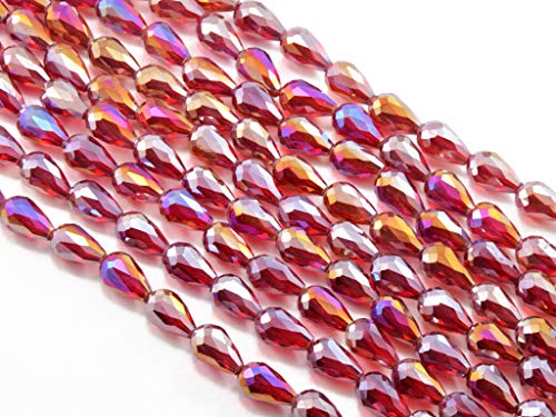 Maroon Transparent Rainbow Drop/Briolette Crystal Bead (8 mm * 12 mm) (1 String) for Jewellery Making Beading Embroidery Art and Craft
