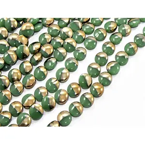 Green Round Pressed Glass Beads...