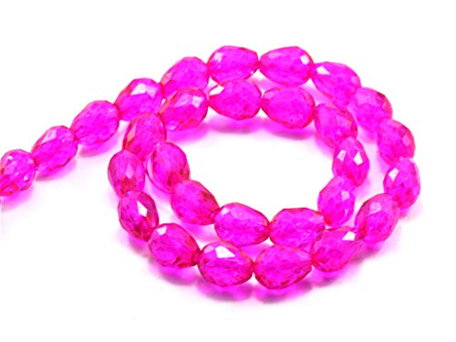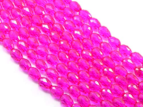 Pink/Magenta Transparent Drop/Briolette Crystal Bead (6 mm * 8 mm) (1 String) for Jewellery Making Beading Embroidery Art and Craft