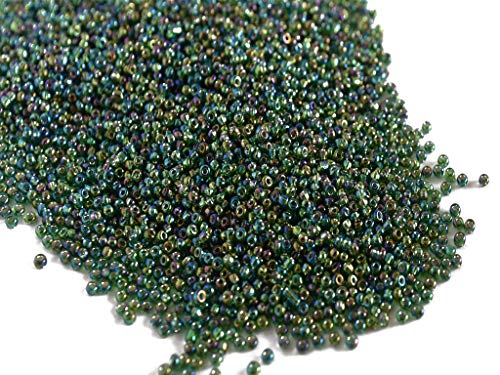 Silverline Rainbow Green Round Rocailles/Glass Seed Beads (11/0-2.0 mm 450 Grams) Standard Quality for Jewellery Making Beading Embroidery Art and Craft