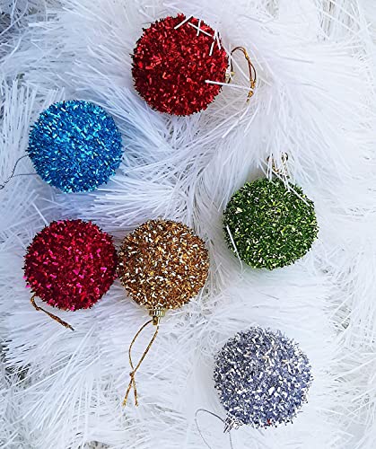 Forty Wings 6 Pcs Multi Gilliter Big Balls Hanging Ornaments Christmas Xmas Tree Decoration for Xmas Christmas Craft