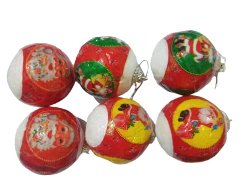 VR Creatives Christmas Tree White Santa Snow Balls Pack of 6 Christmas Tree Decoration Balls H- 2inch