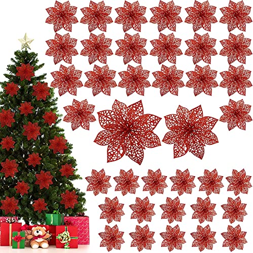 HomeArt & CraftChristmas OrnamentsUrvi Creations Pack of 10 Pcs Red Colour Artificial Flowers for Christmas Tree Ornaments Xmas Tree hangings Ornaments for Christmas Tree Decoration Item Christmas Party Props Favors