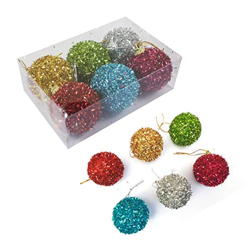 HomeArt & CraftChristmas OrnamentsUrvi Creations Pack of 6 Pcs Multi Glitter Balls Big Size for Christmas Tree Ornaments Xmas Tree hangings Ornaments for Christmas Tree Decoration Item Christmas Party Props Favors