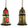 • A pristine set of five bell shaped hangings handpainted with floral motifs and made of lacquered papermache. These magical trinkets have been crafted by Kashmiri artisans of India. A must for Christmas Decoration