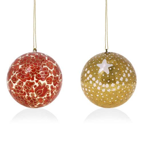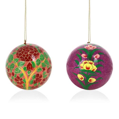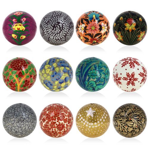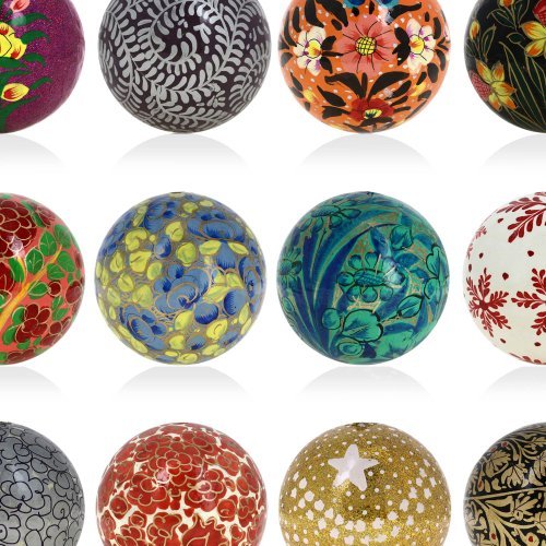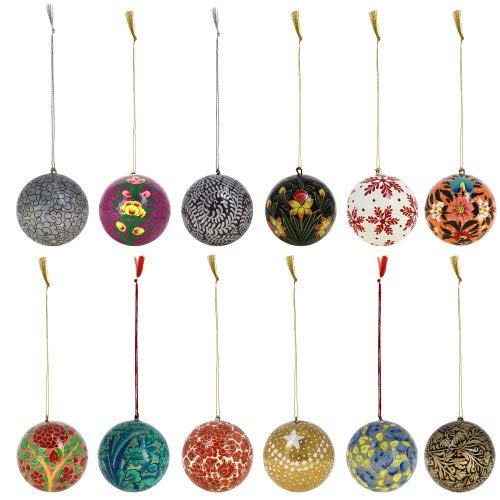Decorating your home for the Christmas holidays helps to put you in the spirit of the season and you want your home to look unique after you've decked the halls and put up your tree. With the Handmade Paper Mache Christmas Ornament Balls you can bring the beauty of Indian handicrafts to your Christmas tree for a look that is original vibrant and sure to impress your guests. The Handmade Paper Mache Christmas Ornament Balls are inspired by the beauty of nature and show off gorgeous floral patterns on their surfaces. Each of the Christmas balls is hand painted with its own original design so the set of 12 that you'll receive will include 12 completely different ornaments for your tree. The photos above are just a small taste of the sorts of designs you'll find in the collection of ornaments that will be shipped to you! Handmade from start to finish the Handmade Paper Mache Christmas Ornament Balls are constructed out of paper mache using traditional techniques that have been practiced for centuries in Kashmir India. The balls are hand formed using specially designed molds and must be allowed to harden for hours before they can be finished. Each one measures 3 inches in diameter and has a loop at the top for a hook ribbon or string. The Handmade Paper Mache Christmas Ornament Balls make a unique gift idea for the holiday season. The recipient of your gift is sure to think of you when he or she uses the decorations for their tree every year. You can also give a set of the Christmas baubles for a birthday a wedding an anniversary Mother's Day or any other special occasion! Make your Christmas or someone else's a whole lot merrier with a set of Christmas decorations unlike anything you've seen before! Order the Handmade Paper Mache Christmas Ornament Balls for yourself or to give as a gift for any occasion! Add a set of 12 to your cart now!