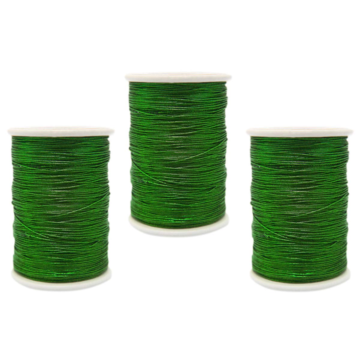 Embroiderymaterial 0.5MM Badla Zari Metallic Threads for Craft Embroidery and Jewellery Making (3 Roll Emerald Green)