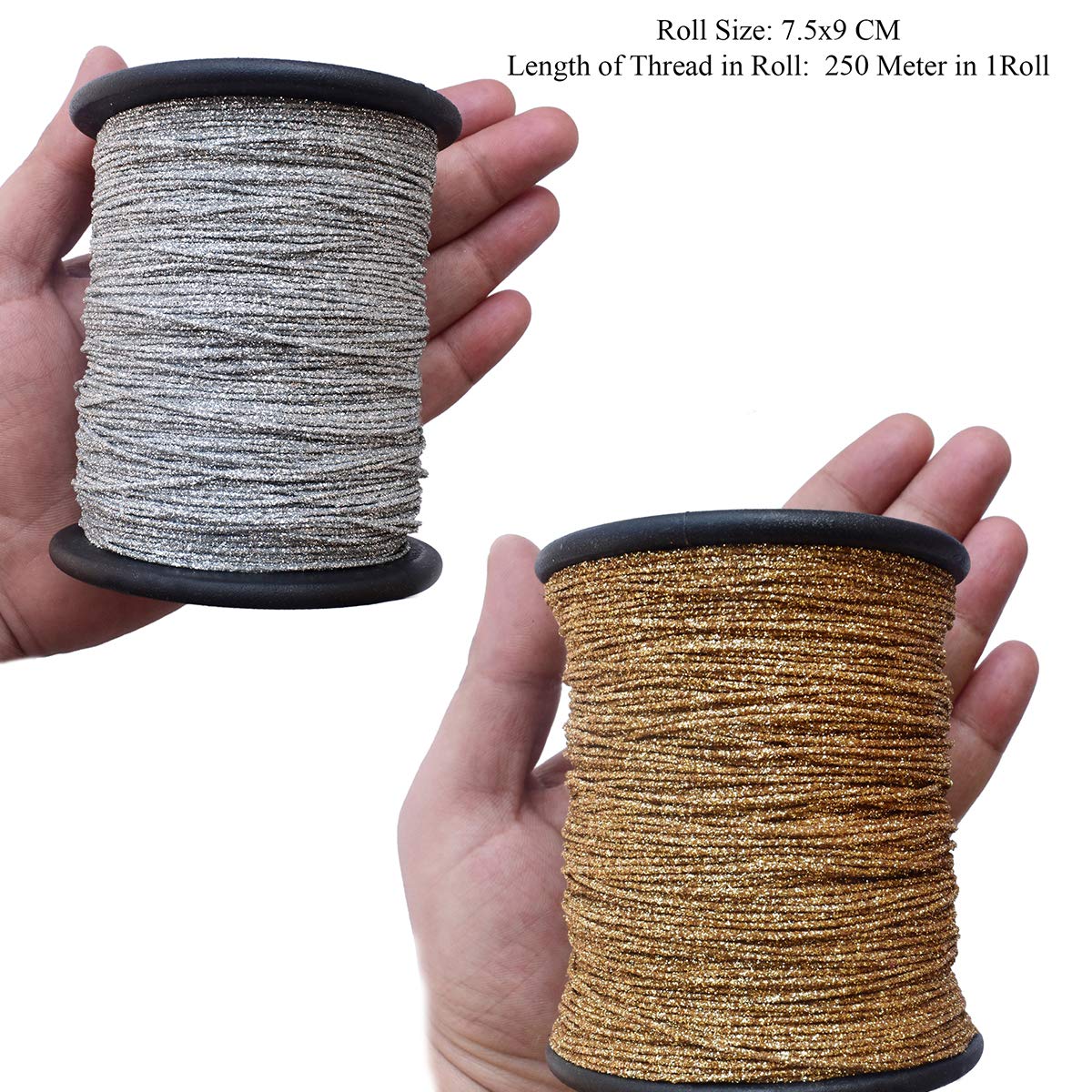 EmbroideryMaterial 1 MM Thin Metallic Glitter Dori Thread for Craft Jewellery Making Sewing Embroidery Work Toran Making (250 Meters/Roll 2 Rolls Golden & Silver)