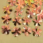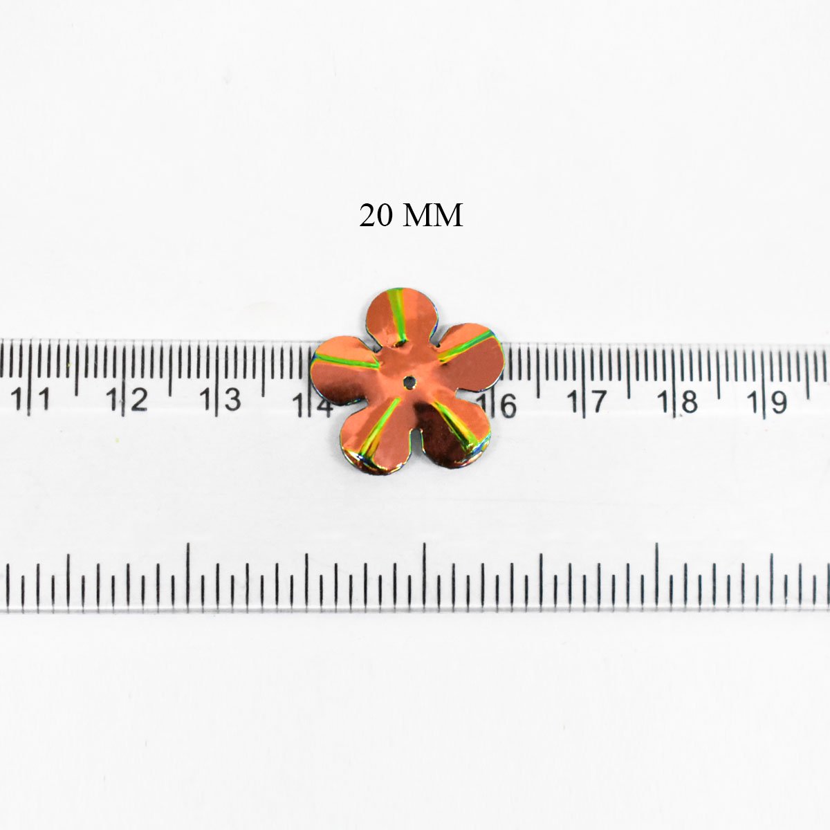 Style: Flower Shape Centre Hole Sequins Color: Green and Orange Finish: CrystalSize: 20MM Product Details: These sequins are perfect for any craft or embroidery project. They have a beautiful finish and they can be easily sewn on any fabric.Lead-free Phthalate free sequins are also available on the production order.