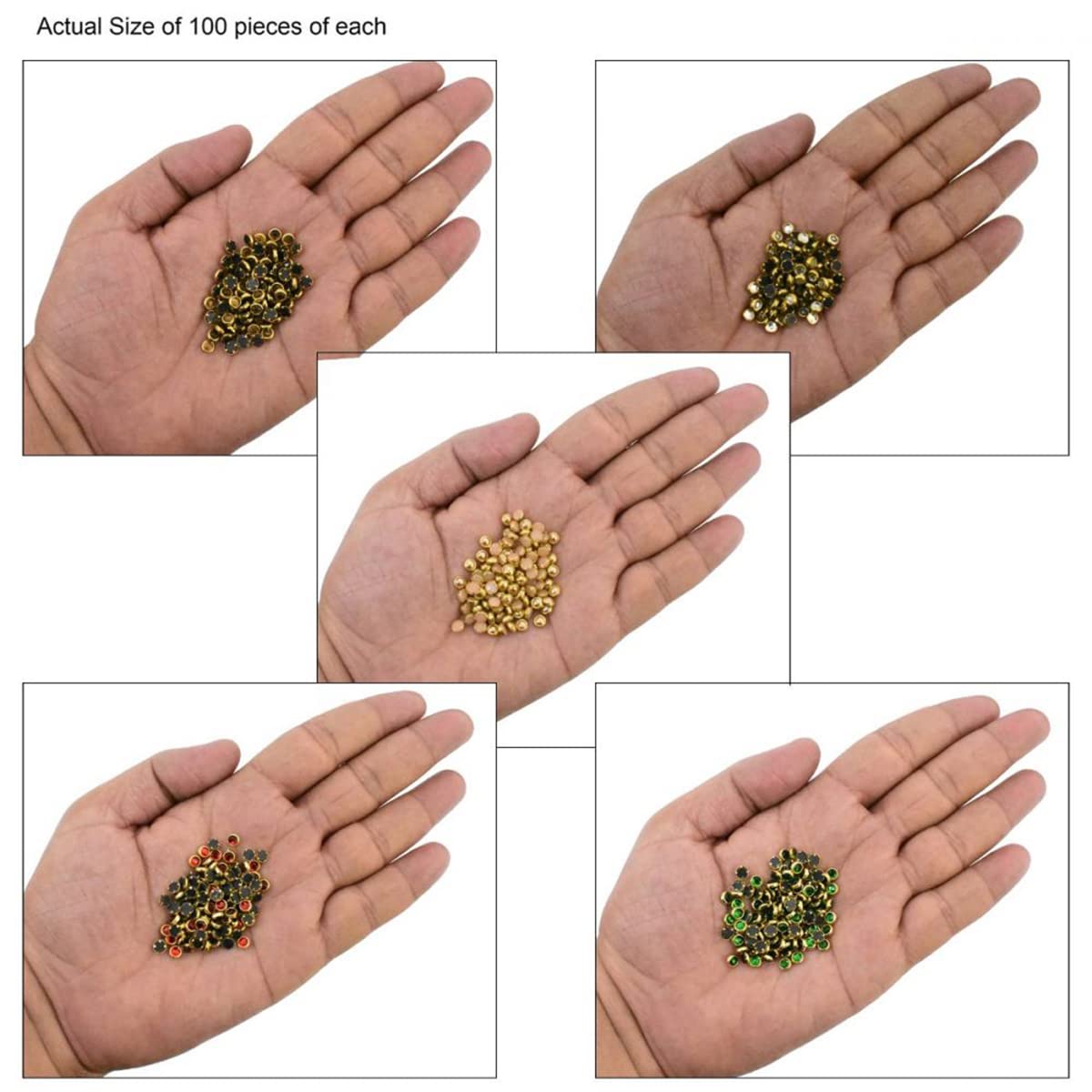 EmbroideryMaterial 4 MM Flat Back Round Kundan Stone Beads for Craft Embroidery Work Jewellery Making Bangles Making Combo of 5 Colors (500 Pieces Creamy Gold Silver Gold Green & Red)