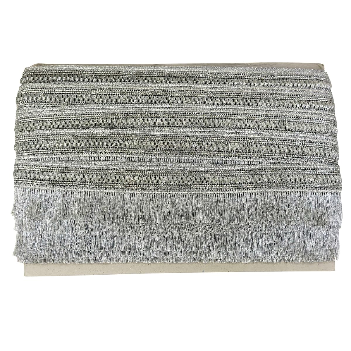 EmbroideryMaterial 4.5 CM Width Fringe Kiran Patti Lace for Saree Border Dress Designing Blouse Kurti Dupatta Embroidery DIY & Craft (Silver 18M/Roll)