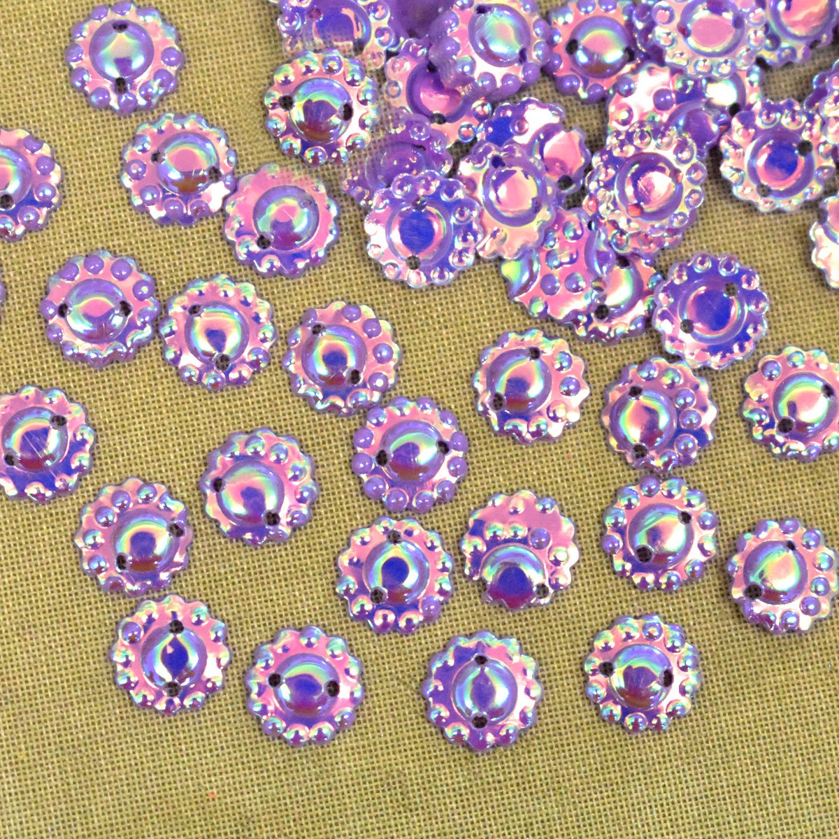 Style: Embossed Flower Shape SequinsColor: Lavender Finish: AB (Rainbow)Size: 9MM Product Details: These sequins are perfect for any craft or embroidery project. They have a beautiful finish and they can be easily sewn on any fabric.Lead-free Phthalate free sequins are also available on the production order.