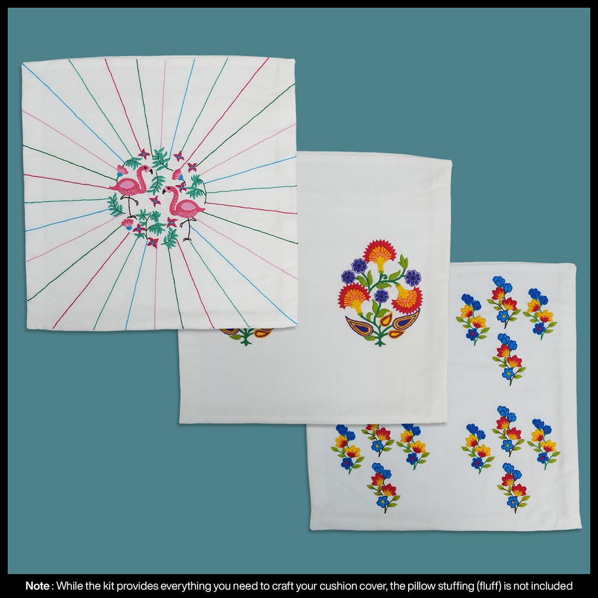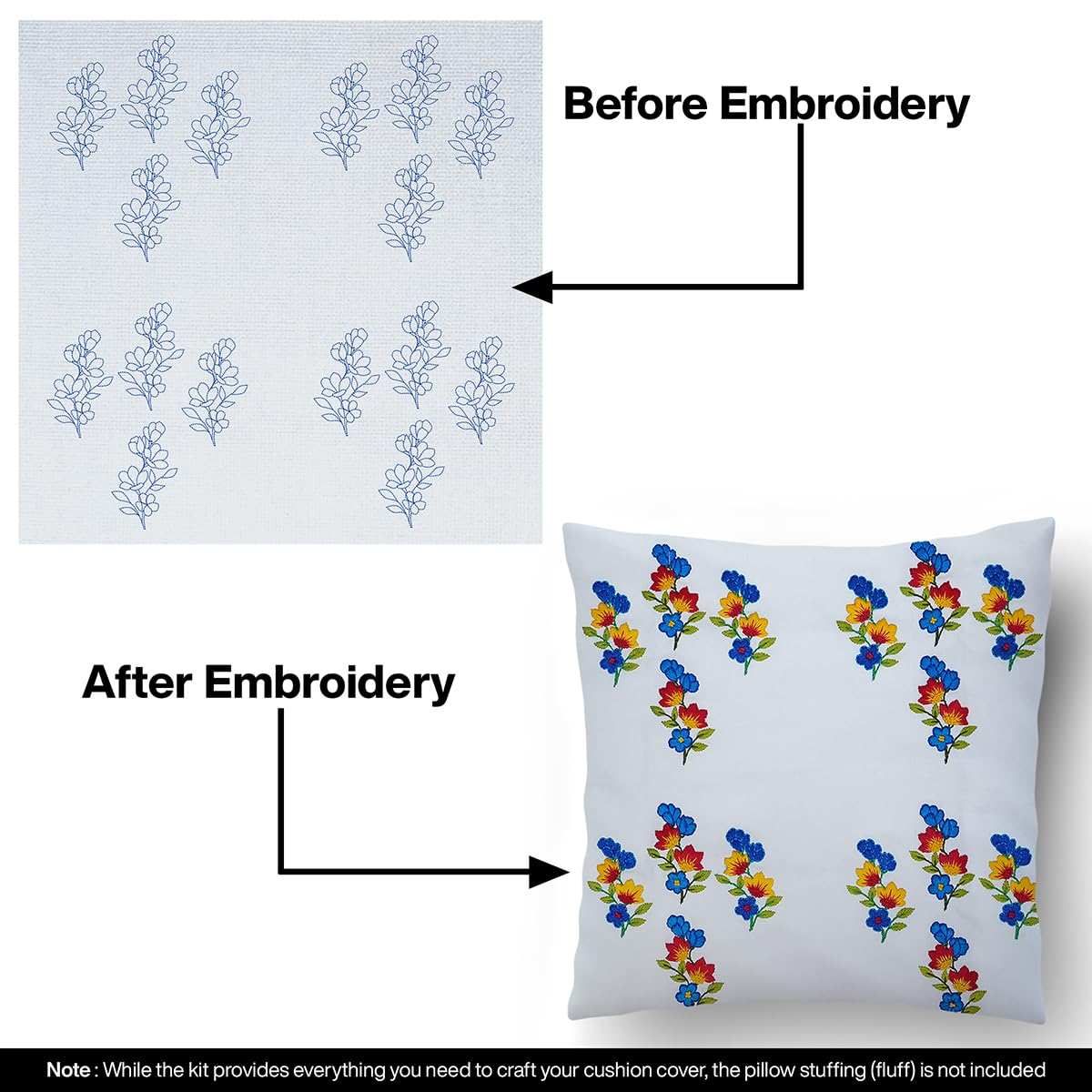Customizable Pillow Covers (Fluff Not Included): After completing the embroidery sew the cushion cover down to a 16x16 inch size and use your own filling (fluff) to achieve the perfect cushion firmness. The kit includes a 16" zipper for easy opening and c