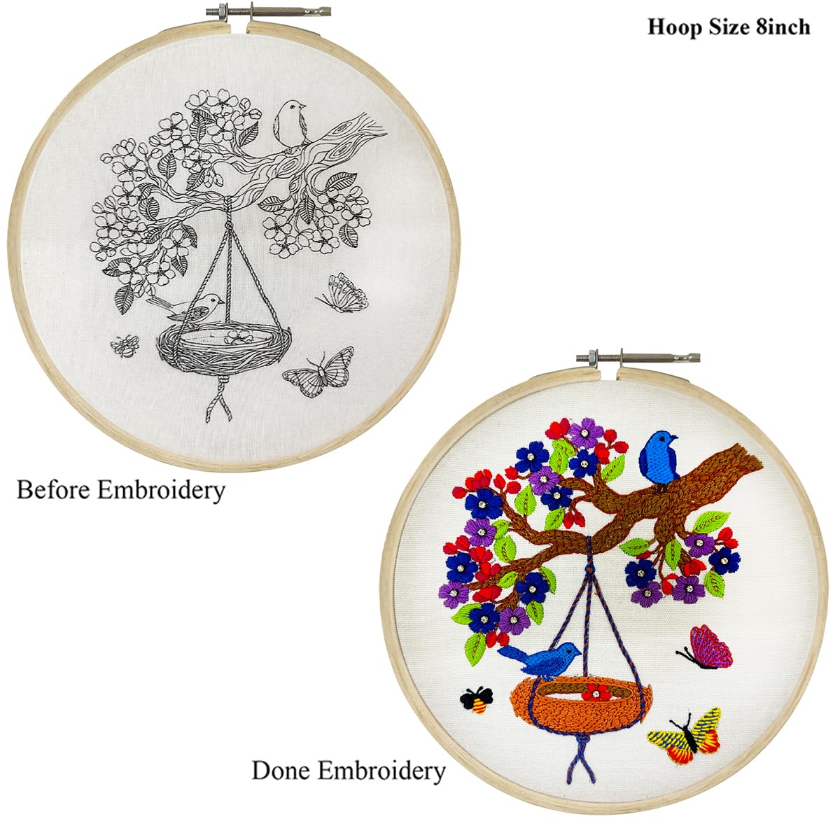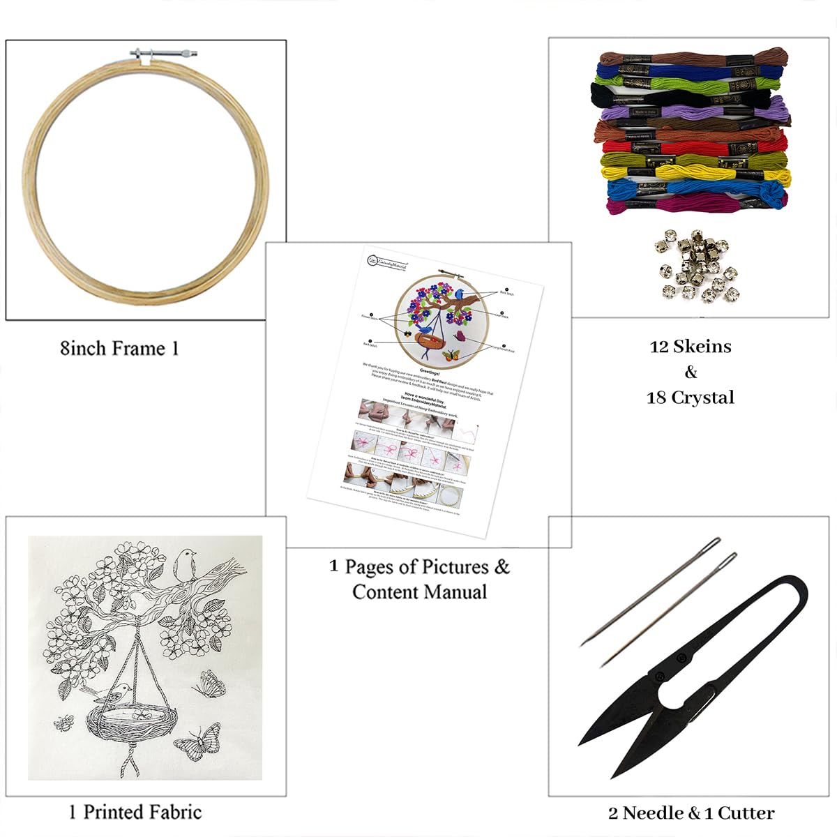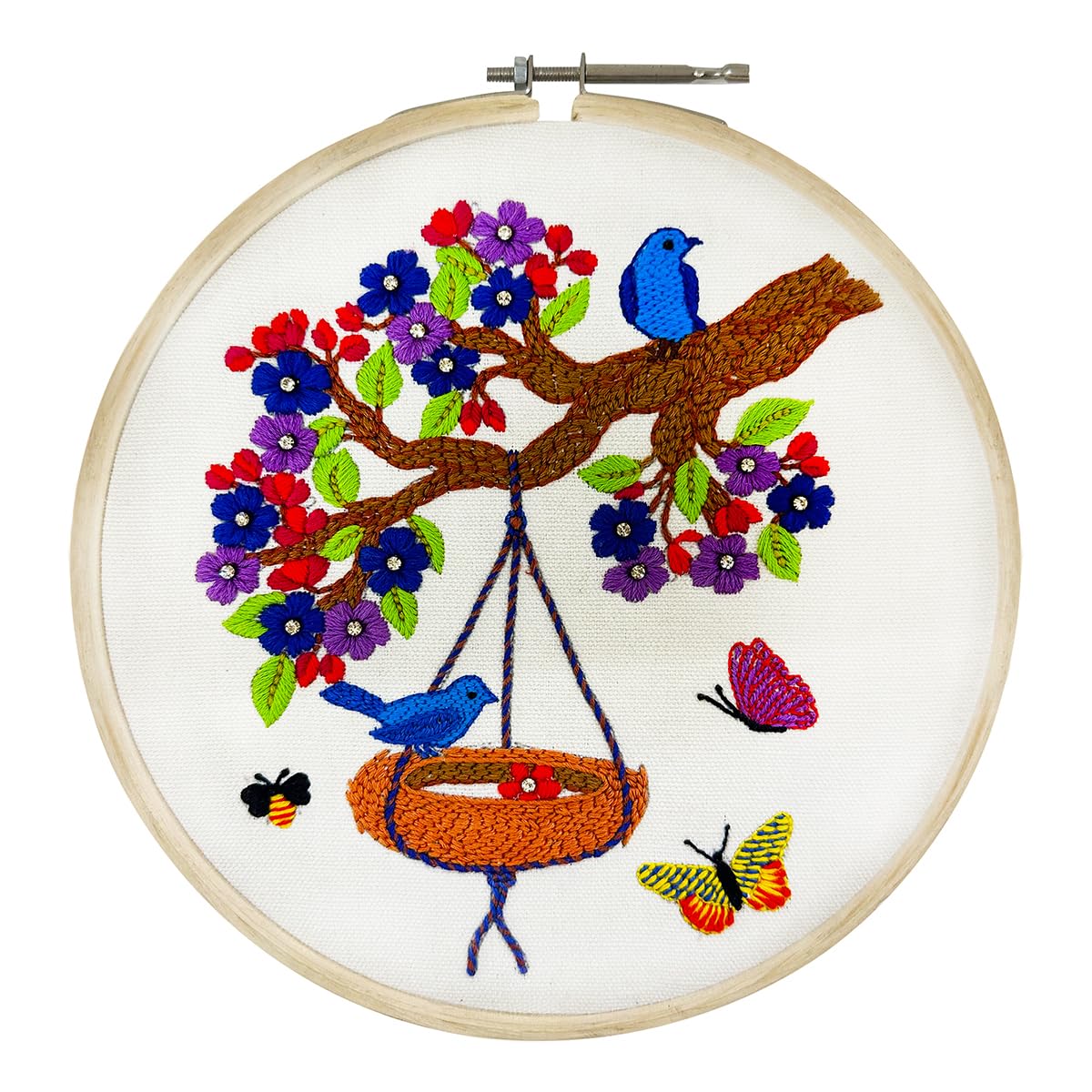 Embroiderymaterial Embroidery Kit Bird Nest Design Digital Printed & Written Instructions All Material
