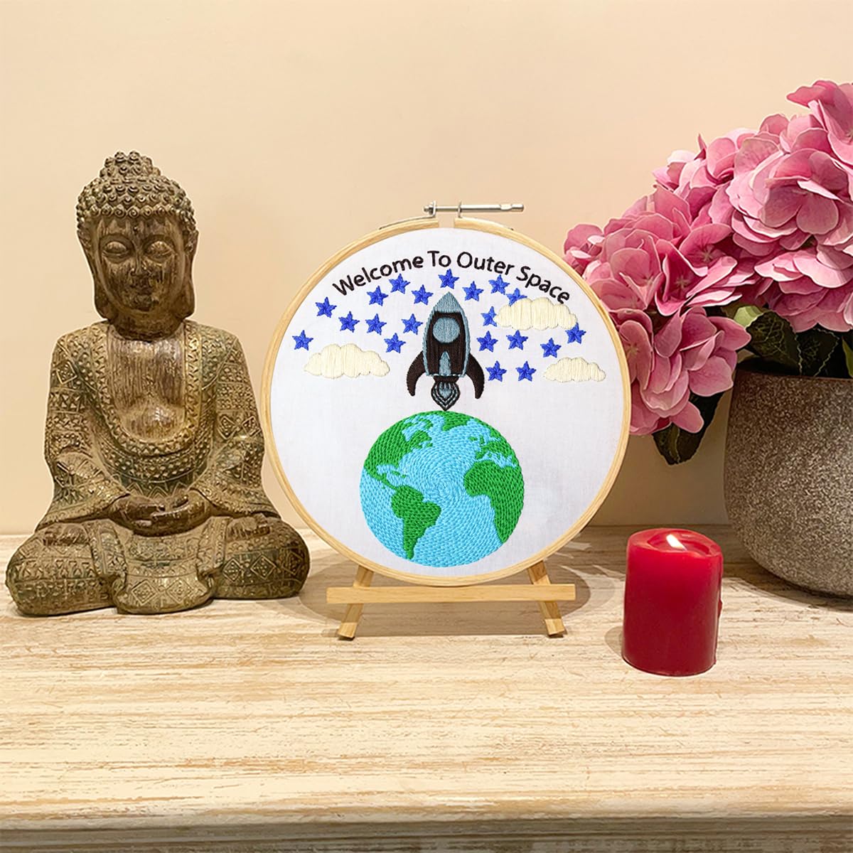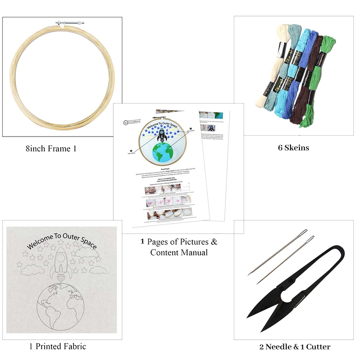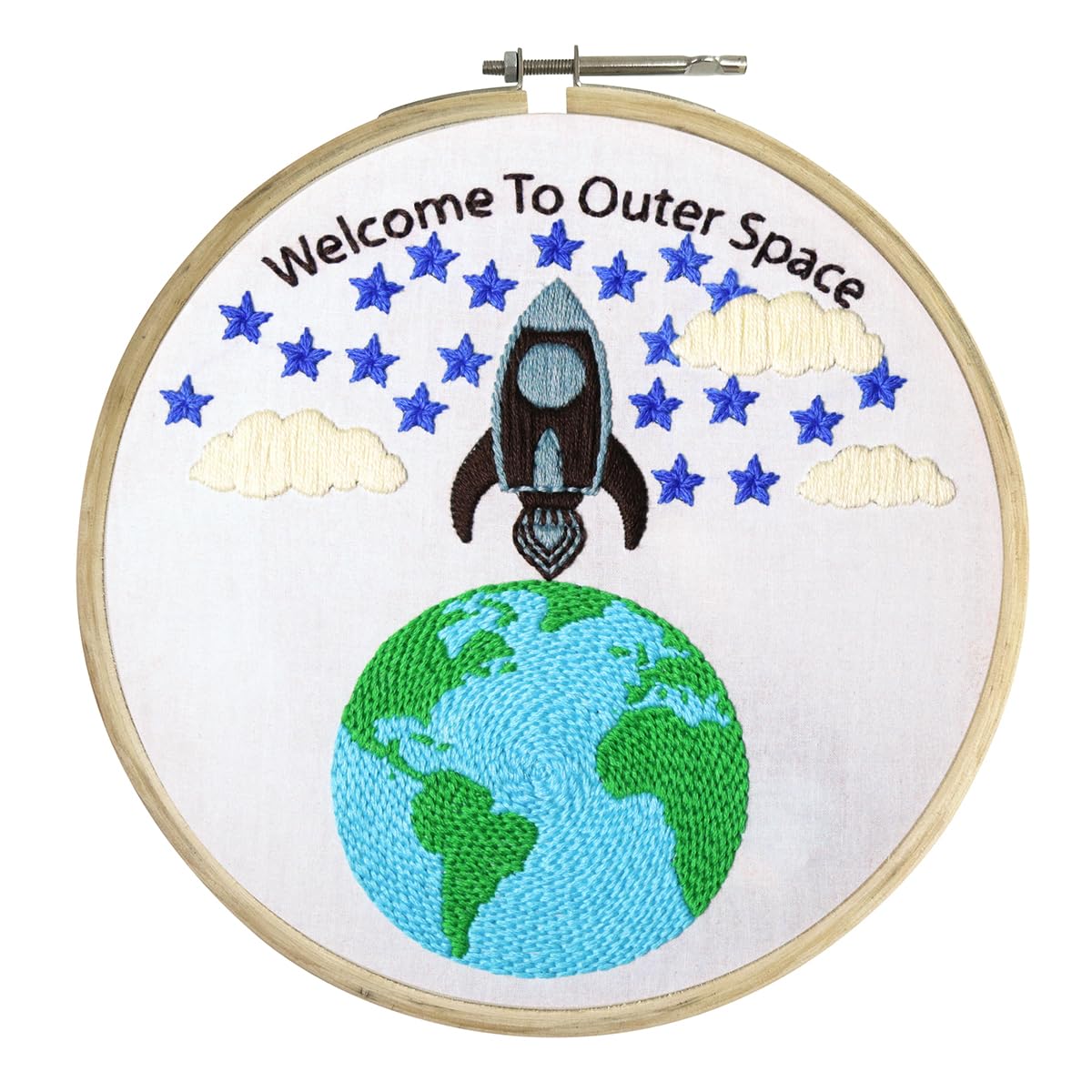 Embroiderymaterial Embroidery Kit/Cross Stitch Kit for Beginners Outer Space Design Digital Printed Cloth & Written Instructions All Material Included (Outer Space)