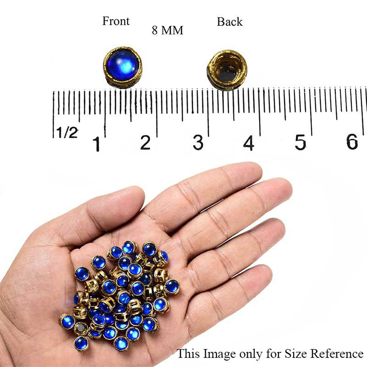 Embroiderymaterial Flat Back Blue Rhinestones in Raised Setting in Round Shape for Jewelry Making & Embellishment-8MM-50 Pieces