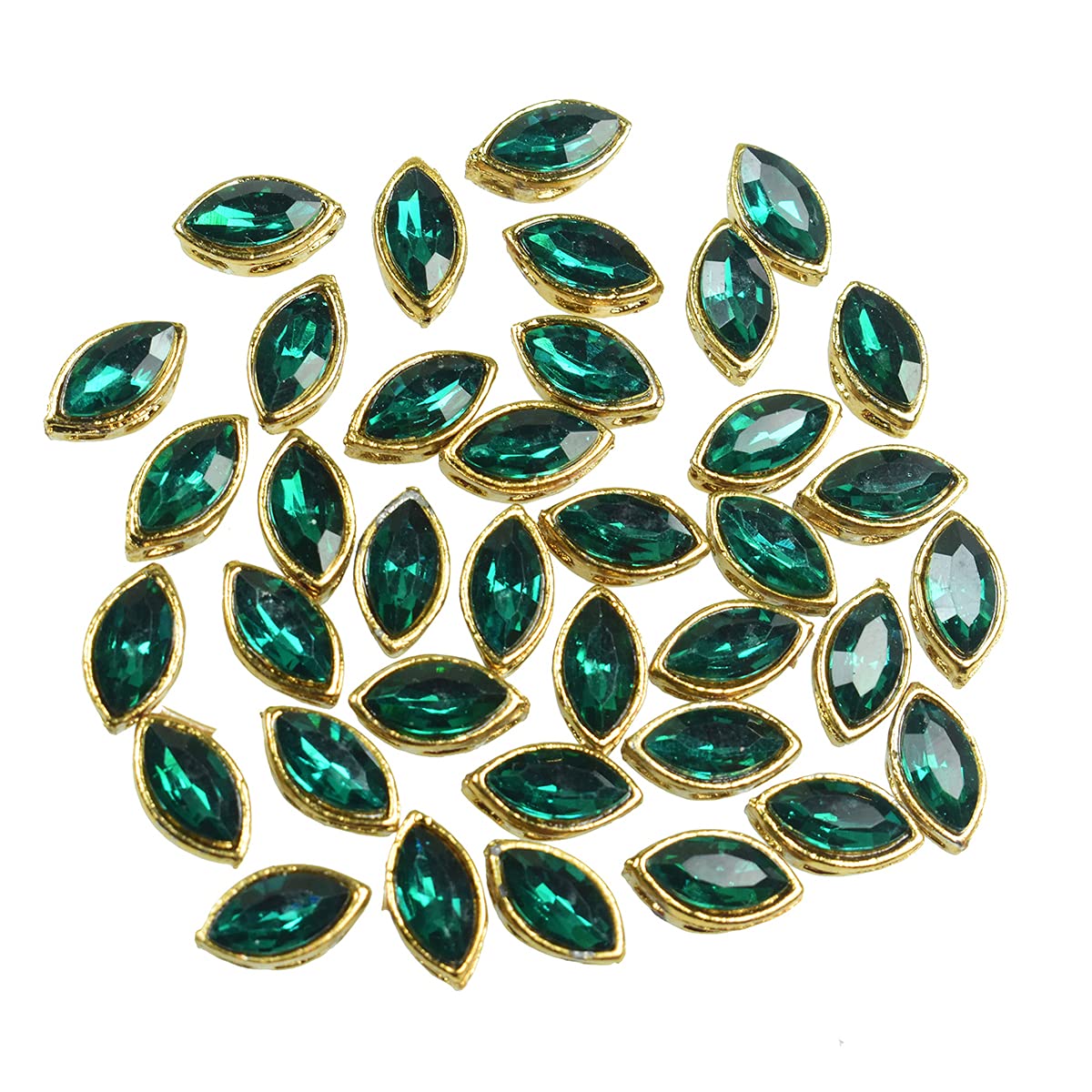 HomeArt & CraftDIYEmbroiderymaterial Flat Back Emerald Green Kundan Rhinestones in Raised Setting in Marquise Eye Shape for Jewelry Making & Embellishment-7 * 12MM-50 Pieces