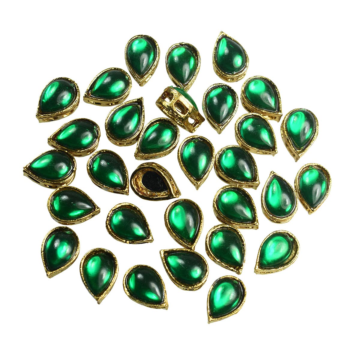 HomeArt & CraftDIYEmbroiderymaterial Flat Back Emerald Green Kundan Rhinestones in Raised Setting in Tear Drop Shape for Jewelry Making & Embellishment-9 * 13MM-25 Pieces
