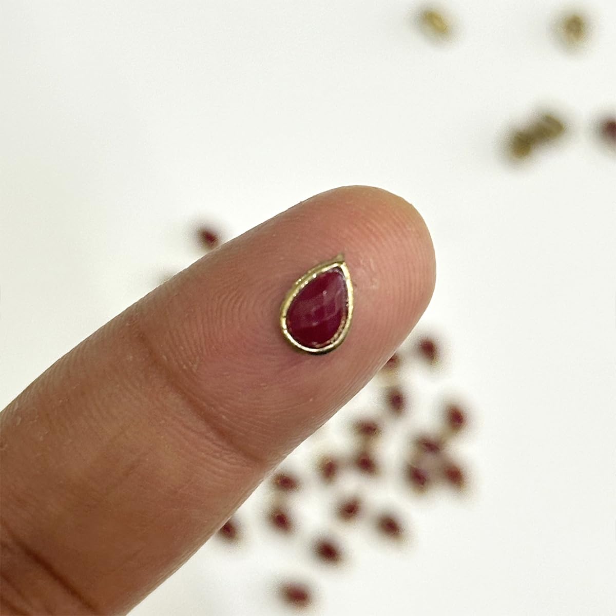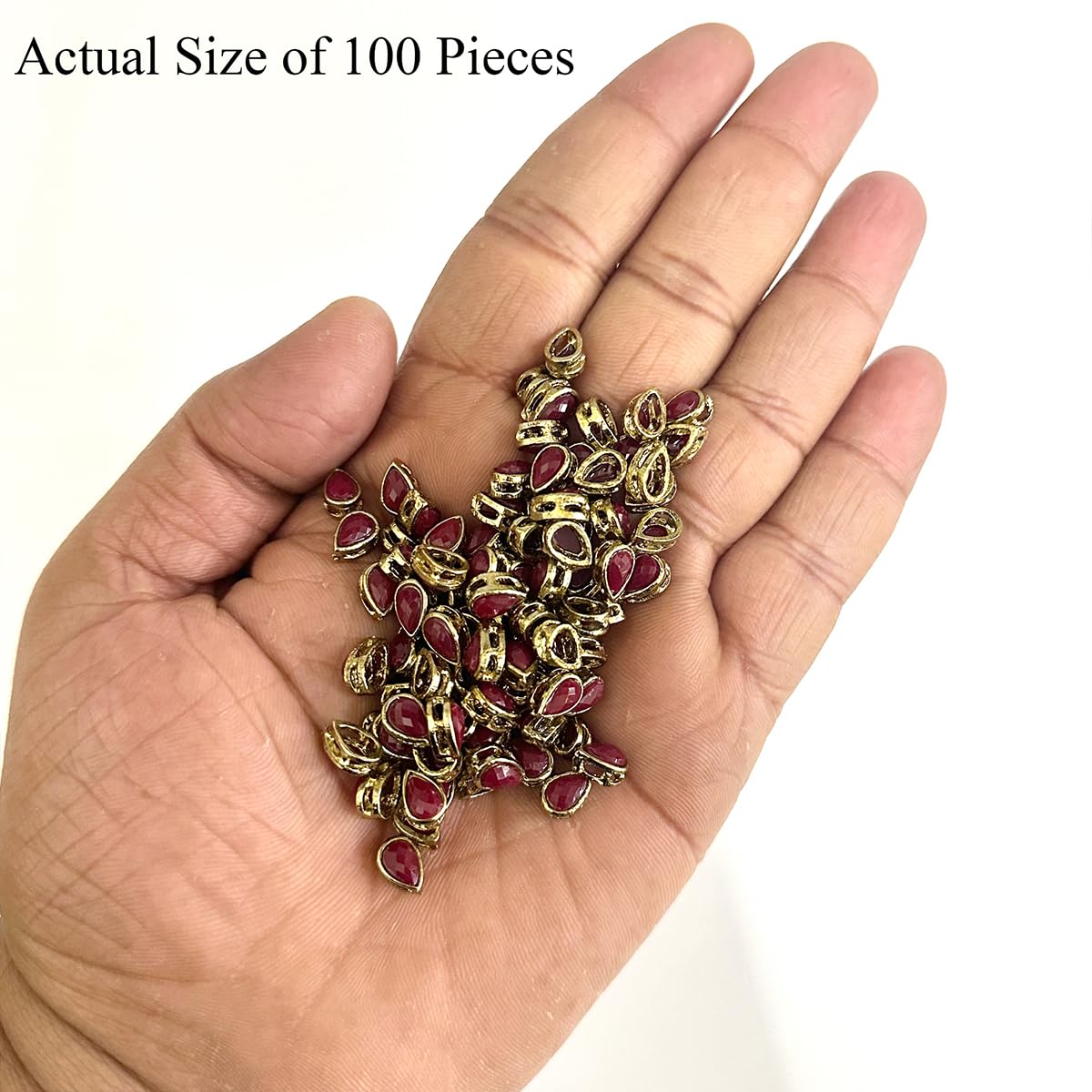 Add an elegant touch to your designs with EmbroideryMaterial Flat Back Sew-On Kundan Stones in a luxurious Maroon color. These 5x8MM teardrop-shaped stones are handcrafted using the traditional art of Meenakari and set in raised brass mounts offering a rich radiant finish for all your craft and jewelry-making projects. Perfect for use in embroidery saree embellishments lehengas and bridal wear these versatile Kundan stones can also be used to create stunning custom jewelry pieces like earrings necklaces and bracelets. The flat back design ensures they are easy to sew or glue onto a wide variety of surfaces making them convenient for any DIY project.