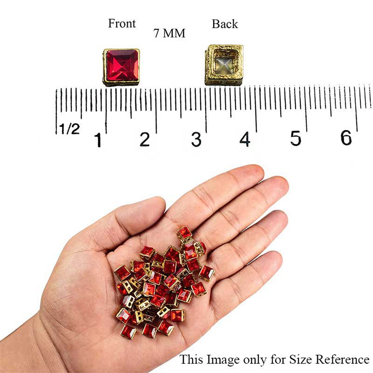 HomeArt & CraftDIYEmbroiderymaterial Flat Back Ruby Red Kundan Rhinestones in Raised Setting in Square Shape for Jewelry Making & Embellishment-7MM-25 Pieces
