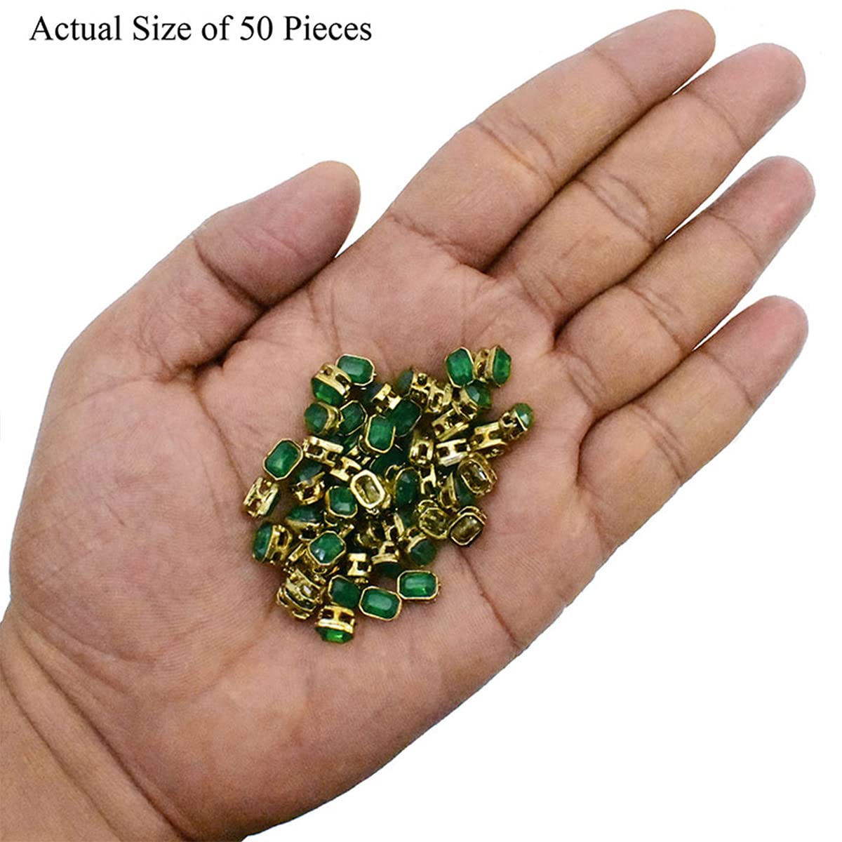 Elevate your crafting projects with the EmbroideryMaterial Flatback Sew On Kundan Rhinestones. These exquisite rhinestones crafted in a Rectangle shape and Emerald Green color are perfect for adding a touch of elegance and sparkle to your creations.Style: Flat back Sew On Kundan Rhinestones in Raised SettingMaterial: Stone: High-Quality Resin Mount Setting: BrassSize & Shape: Rectangle Shape 5X7MMColor: Emerald Green Finish: OpalQuantity: 50 PiecesEach Kundan stone is meticulously hand-fitted by Indian artisans onto raised mounts ensuring a flawless finish and impeccable quality. Traditionally used in making wedding jewelry for royals these Kundan rhinestones carry a rich heritage and add a regal touch to any project.Versatile and easy to use you can sew these rhinestones onto a variety of surfaces including fabric leather and more. Whether you're embellishing garments creating jewelry or adding accents to accessories these Kundan rhinestones will elevate your designs with their exquisite beauty.