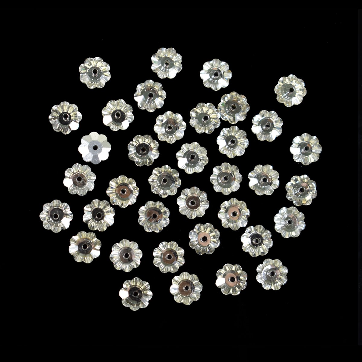 Product Details: These beautiful multifaceted glass crystal have an alluring crystal cut finish. They have a fine foil coating which aids the crystal to reflect a large amount of light hence making each and every facet shiny. They are centrally drilled and famous as Marguerite Lochrose Flower