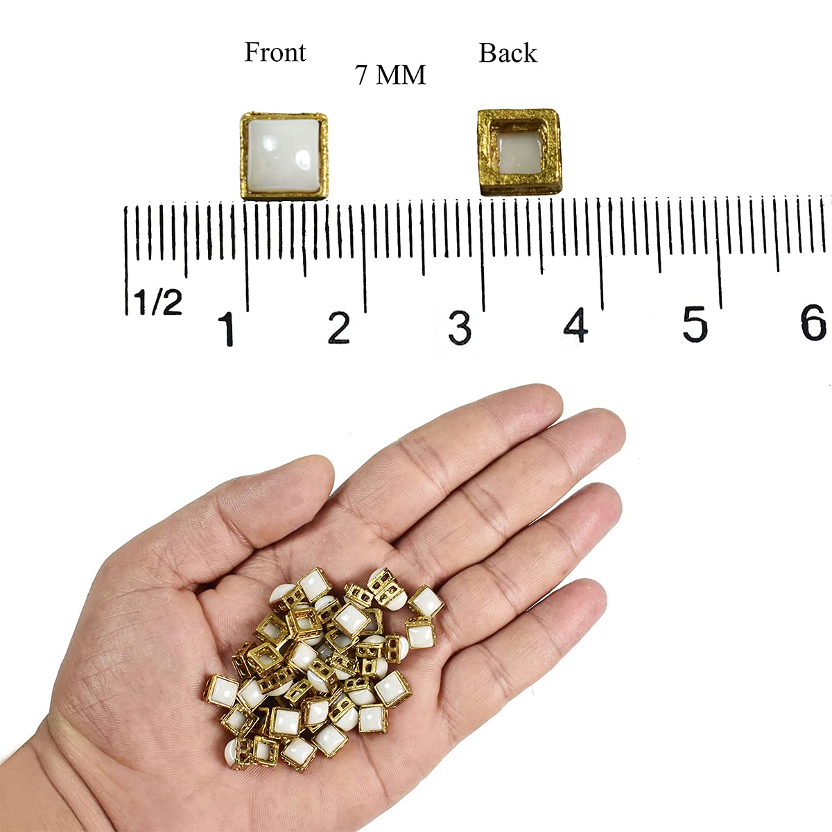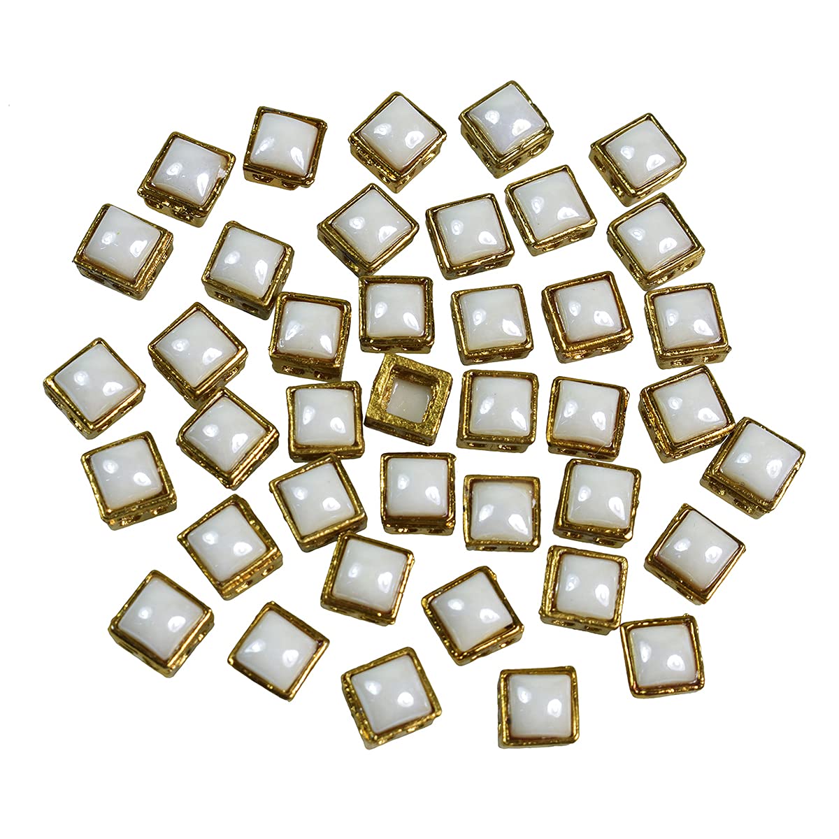 HomeArt & CraftDIYEmbroiderymaterial Kundan Stones Beads Flat Back Kundan Rhinestones in Raised Setting for Jewellery Making & Embroidery in Pearl White Color Square Shape-7MM-50 Pieces