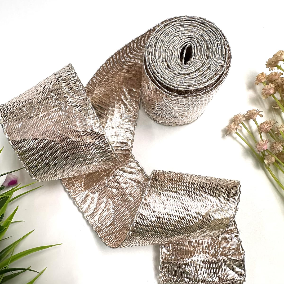 HomeArt & CraftDIYEmbroideryMaterial Lampi Lace/Gota Laces Roll Borders Material for Blouse Saree Dupatta Kurtis Apparels Embroidery Craft & DIY (Light Rose Gold 4.5 Meters Long)