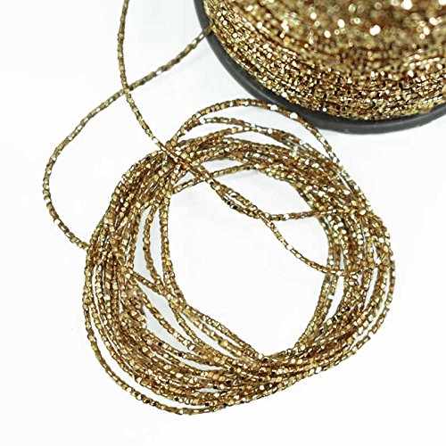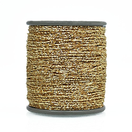 Style: Zari Metallic Cotton Yarn Color: Gold Daimeter of Thread: 1MM 1 Roll: 100 metres Product Detail: This thread is a little rough to touch as the flat metallic thread is twisted before wrapping on the core cotton thread. Wrapping metallic strip in this manner gives the thread a brand new look. If you are bored with regular Zari Threads this thread might seal the deal for you. This thread is used with Machine and Hand for Haute Couture Embroidery on apparels bags appliques etc. "