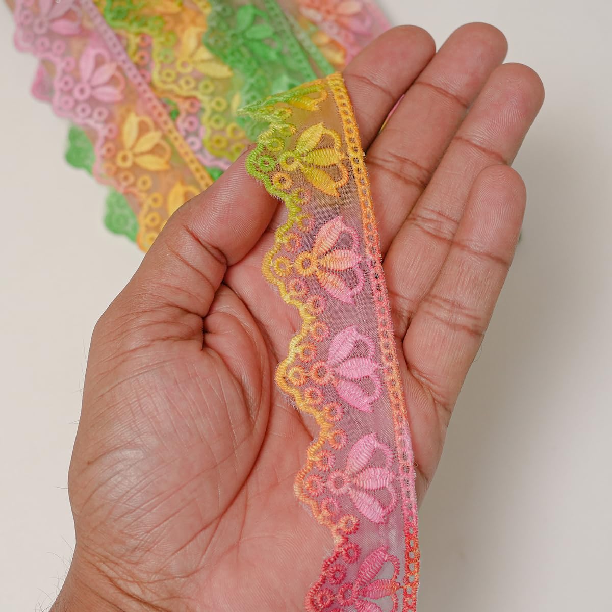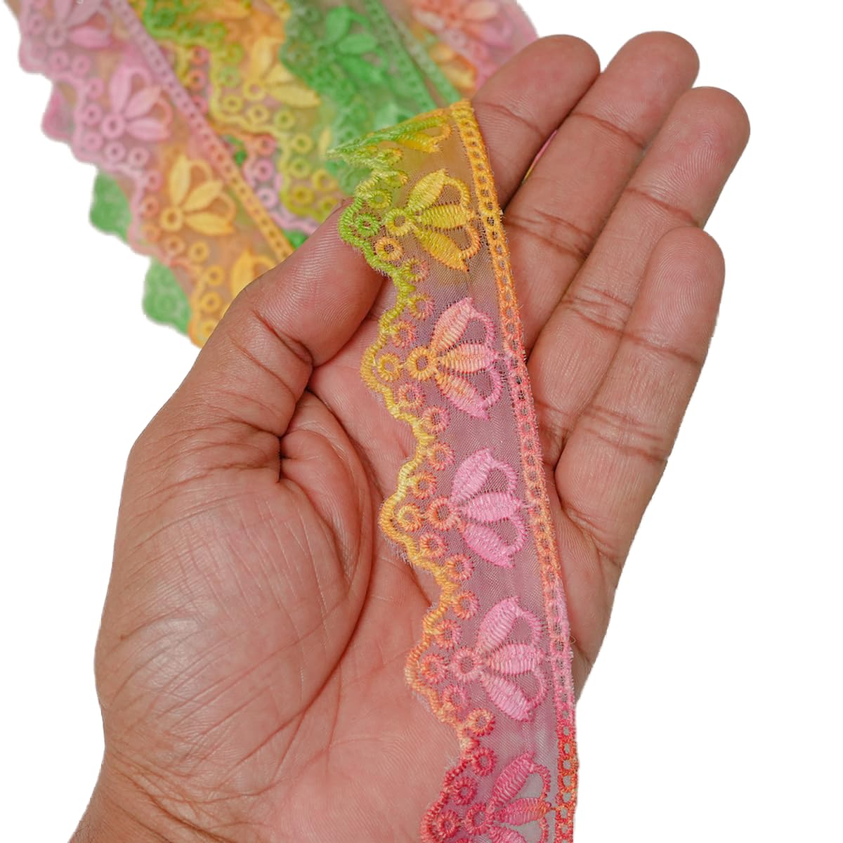EmbroideryMaterial Multi Color Cotton Trim Laces and Borders Material for Saree Border Suit Kurta Dupatta Blouse Gown Lehenga & Neckline (10 Meters 4 CM Wide)