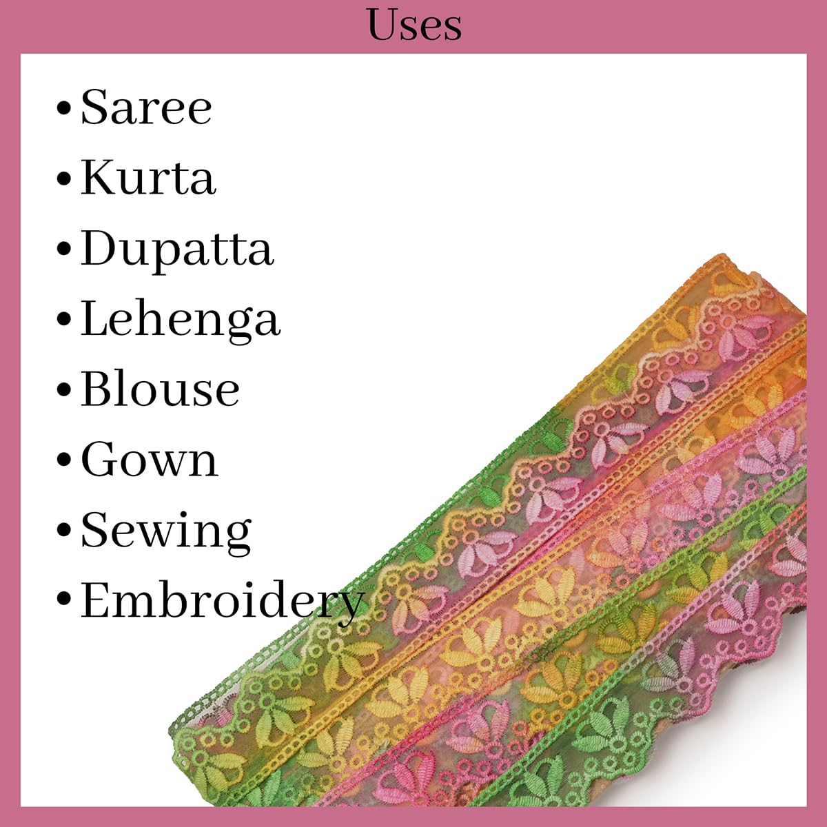 HomeArt & CraftDIYEmbroideryMaterial Multi Color Cotton Trim Laces and Borders Material for Saree Border Suit Kurta Dupatta Blouse Gown Lehenga & Neckline (10 Meters 4 CM Wide)