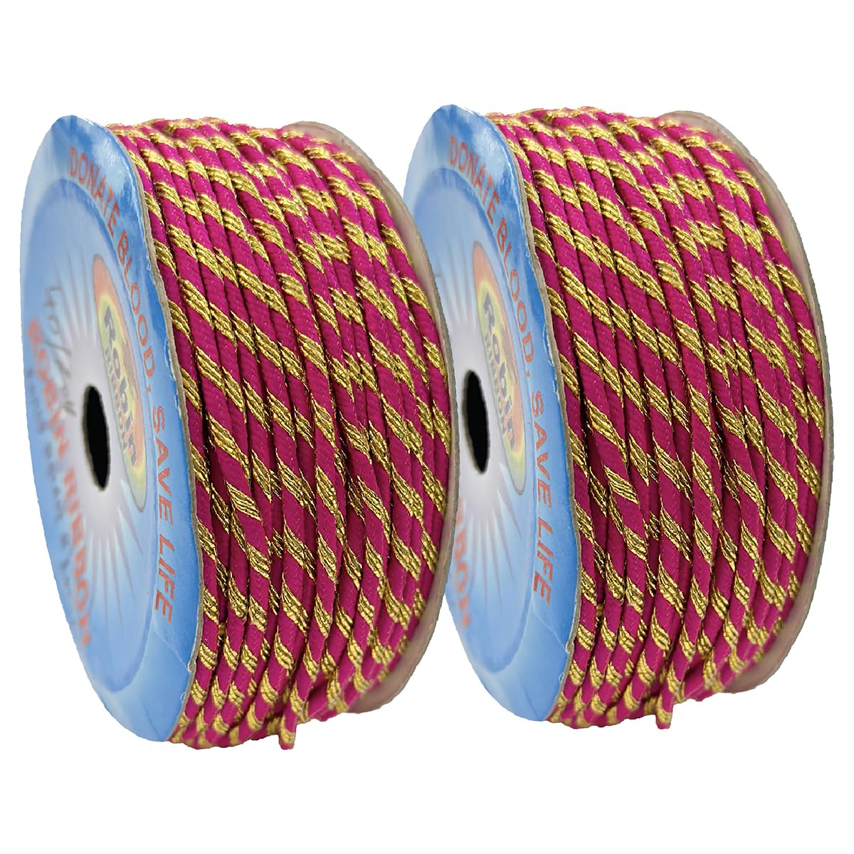 EmbroideryMaterial Pink Gold Shiny Badla Braided Thread/Dori For Embroidery Jewellery Making DIY Craft Sewing (2MM Thick Pink 2 Rolls 15m/Roll)