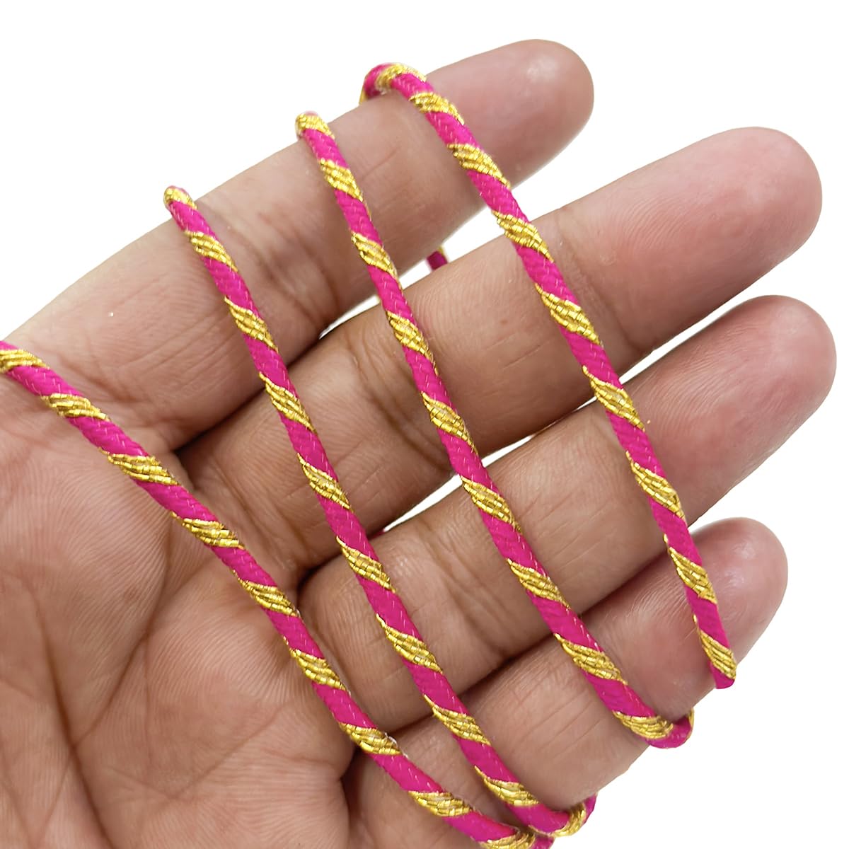 Shiny Badla Braided Design: Our thread features a shiny badla braided design in a stunning pink gold color adding a touch of glamour and sophistication to your creations.