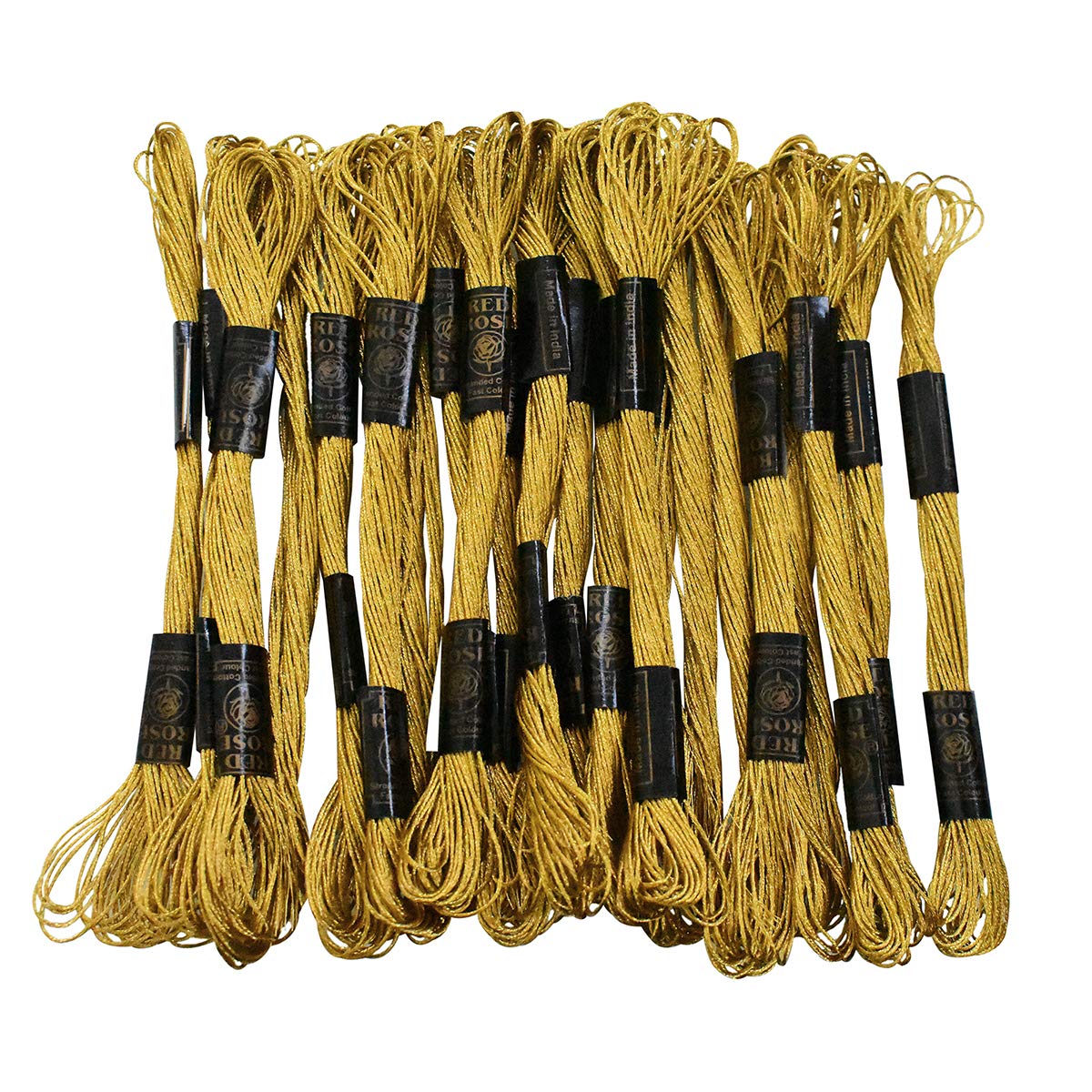 Embroiderymaterial Polyester Metallic Embroidery Cross Stitch Floss Threads In Gold Color 25 Skeins