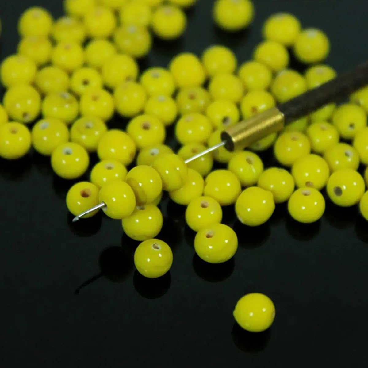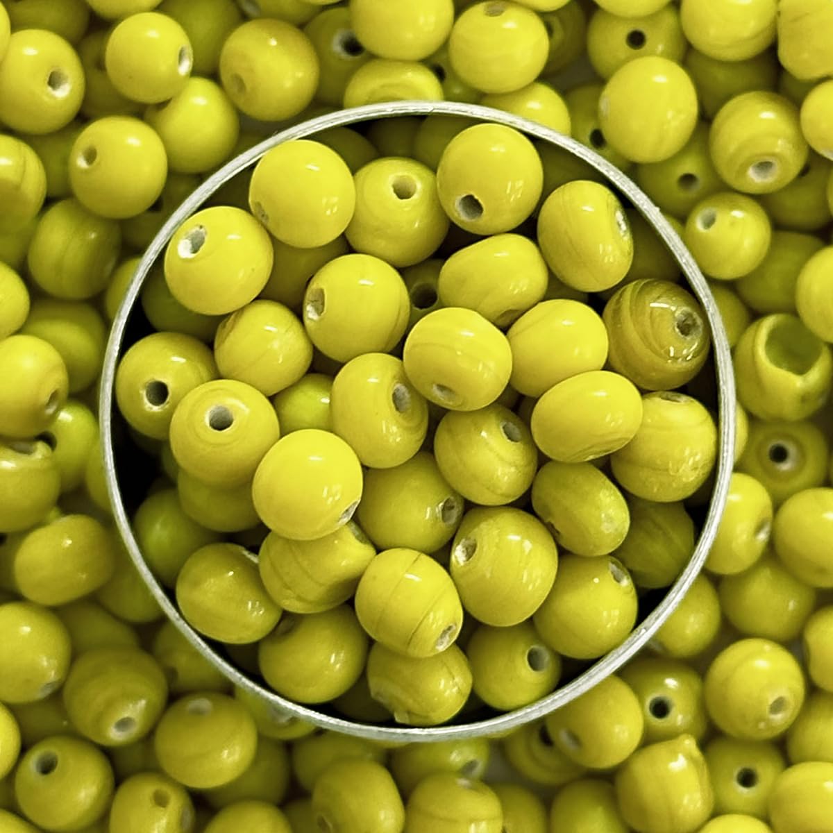 Brighten up your crafting projects with these vibrant Round Ceramic Glass Beads (Moti)! Whether you're crafting jewelry bracelets embroidery work malas torans or other decorative pieces these beads are the perfect choice for infusing your creations with a pop of color and style.Each pack contains 100 grams of beads in a delightful lemon yellow color ranging from 3 to 5 millimeters in size. The sunny and cheerful hue of lemon yellow adds a refreshing and lively touch to your designs making these beads a versatile option for a variety of crafting endeavors.Crafted from high-quality ceramic glass material these beads feature a smooth surface and a lustrous finish elevating the overall aesthetic of your projects with a touch of sophistication. Whether you're a beginner or an experienced crafter these beads are easy to work with and inspire endless creativity.String them onto wire or thread to design eye-catching jewelry pieces sew them onto fabric for intricate embroidery work or incorporate them into mala and toran designs to infuse traditional charm into your crafts. The possibilities are limitless with these versatile beads!Durable and long-lasting these Round Ceramic Glass Beads (Moti) are designed to withstand the test of time ensuring that your creations remain beautiful for years to come.Features:Pack of 100 grams of round ceramic glass beads (Moti)Color: Lemon YellowSize: 3 to 5 millimetersVersatile and ideal for jewelry making bracelet crafting embroidery work mala making toran making and moreSmooth surface and lustrous finish for an elegant lookEasy to work with for crafters of all skill levels