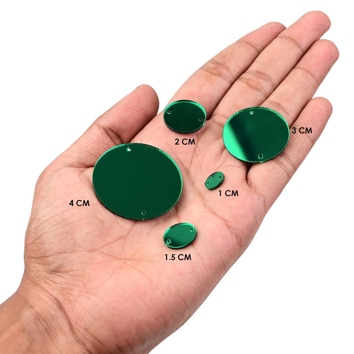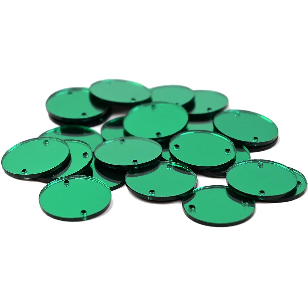 Embroiderymaterial Round Sew On Green Acrylic Craft Mirrors for DIY Craft Art 25 Pieces (1.5 CM)