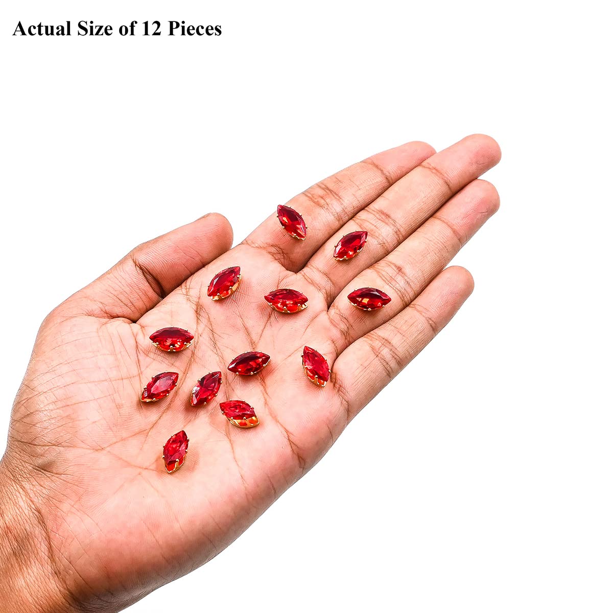 Embroiderymaterial Ruby Red Sew On Rhinestones for Embroidery Jewellery Making Crafts DIY in Crown Prong Base Settings (25 Pieces 7X14MM Eye Boat Marquise Shape)