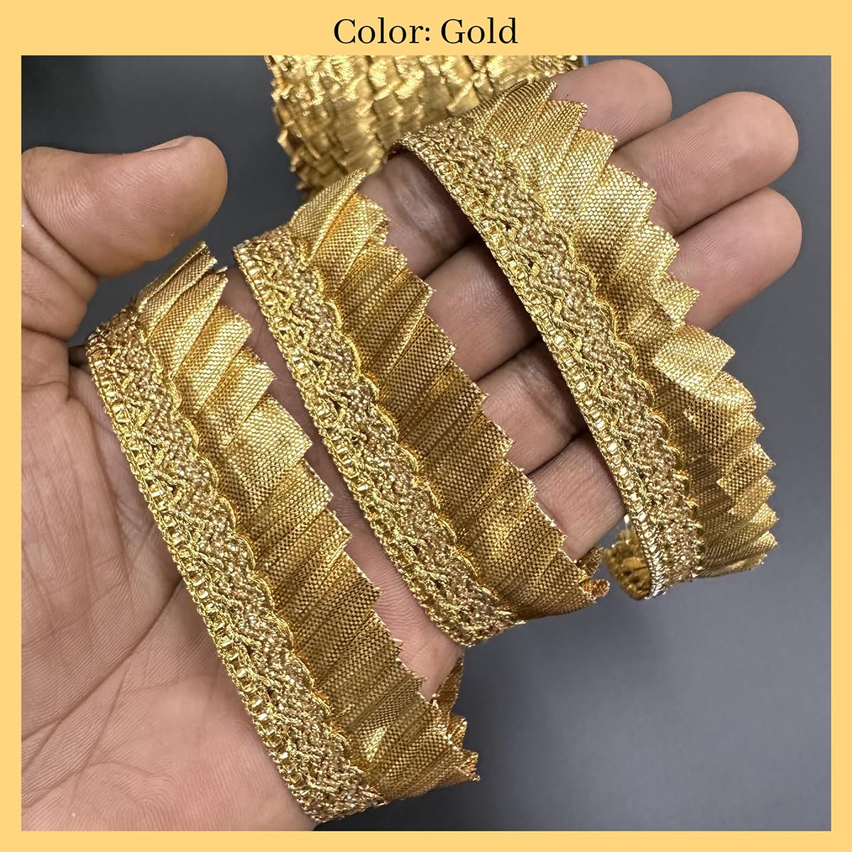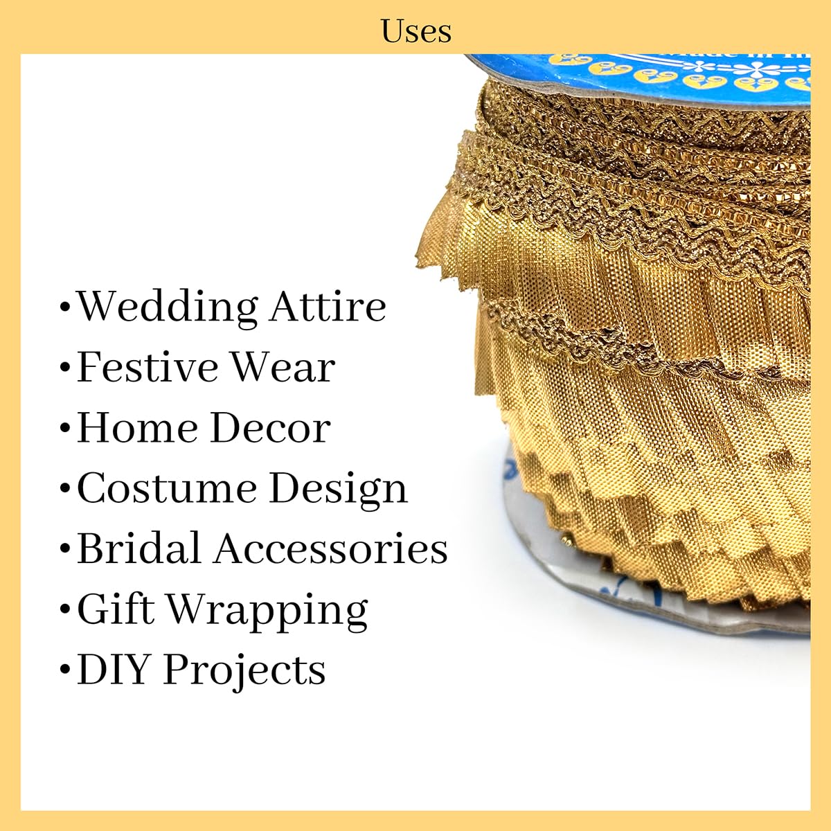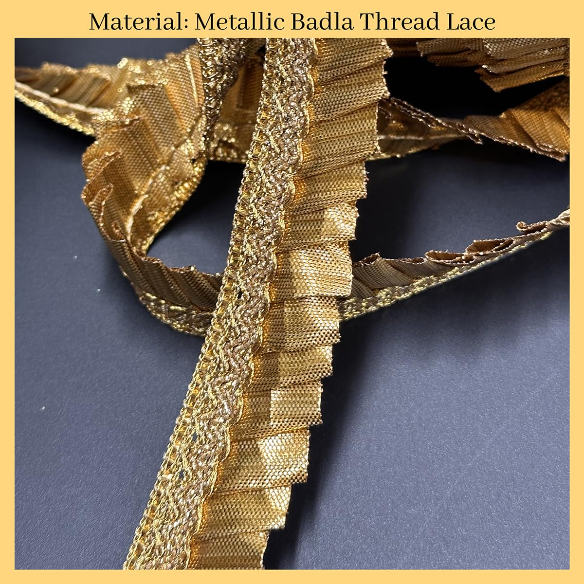 Premium Quality: Made from high-quality Gold zari and Flat Metallic Badla this lace offers durability and a luxurious finish ensuring a stunning addition to your creations.