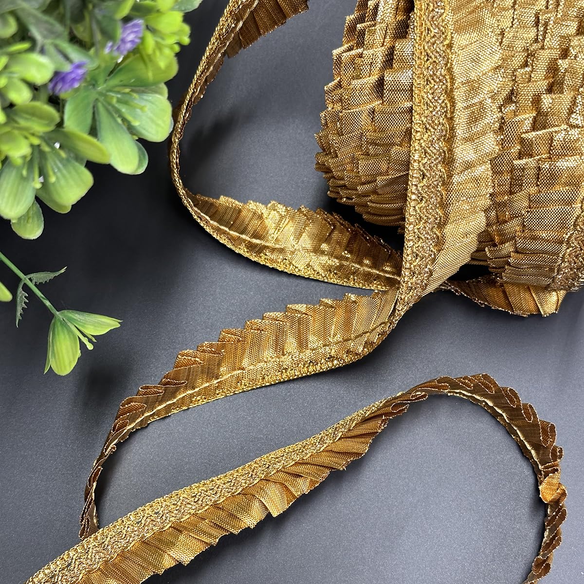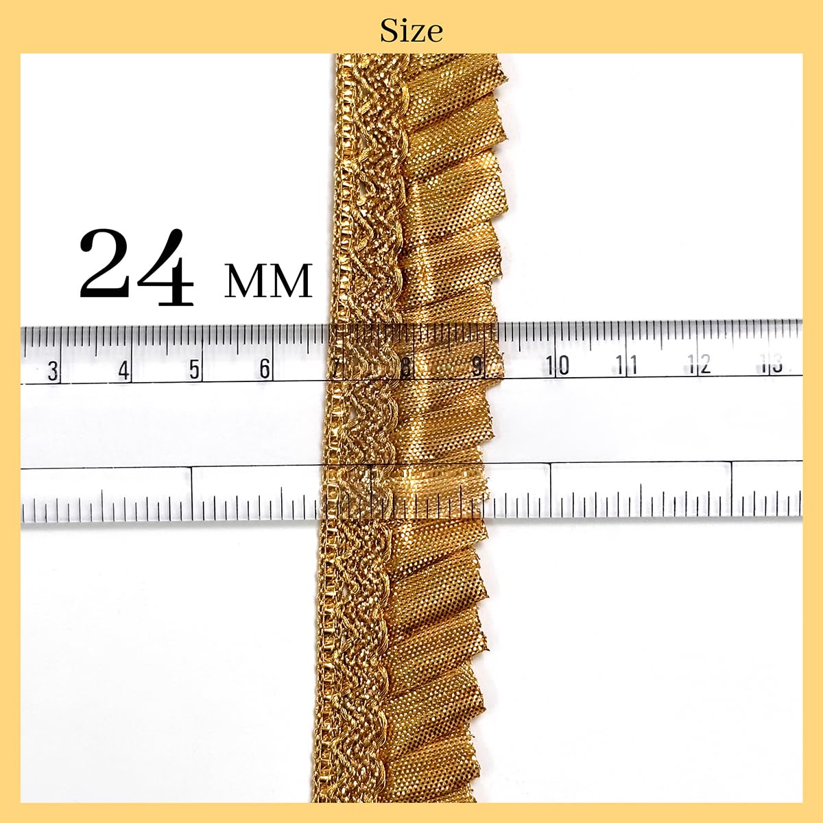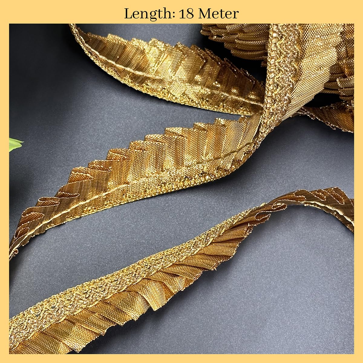 EmbroideryMaterial Shining Zari Sewing/Embroidery Lace for Saree Border Blouse Dupatta Border Lehenga Kurti etc (18 Meters Gold 24mm Wide)