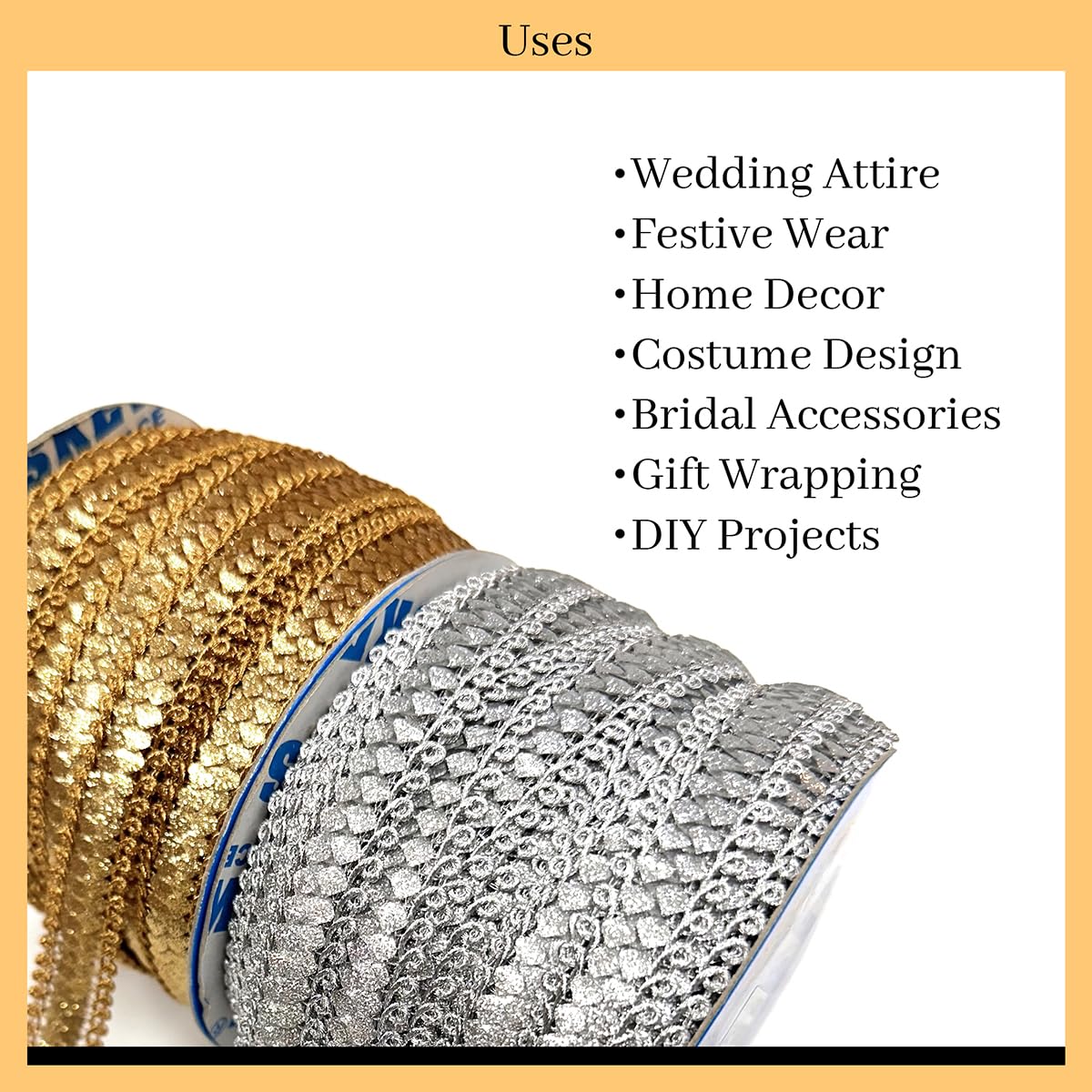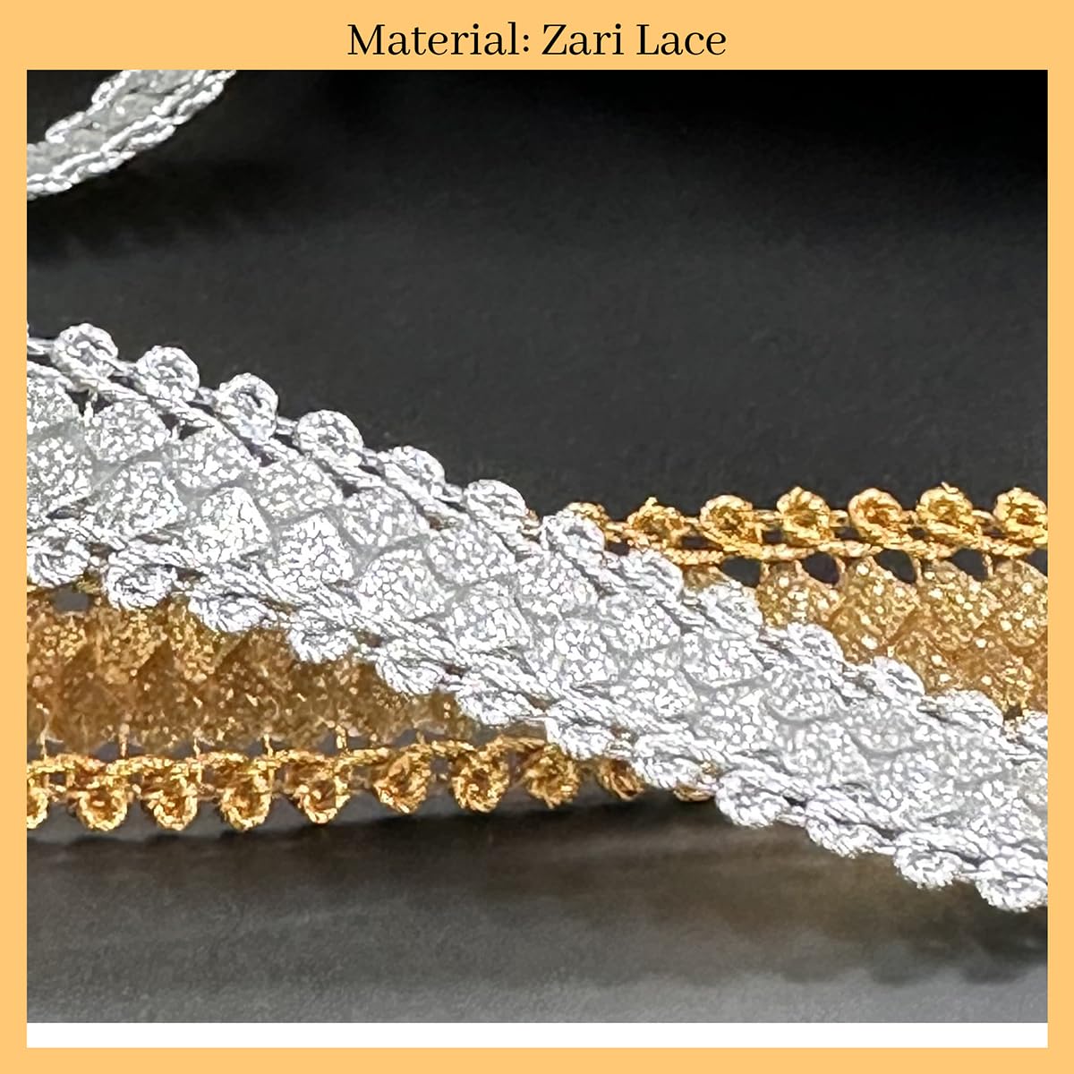 Easy to Work With: Whether you're a seasoned crafter or a DIY enthusiast these Zari Laces are easy to sew or embroider onto your garments ensuring a seamless and refined finish.