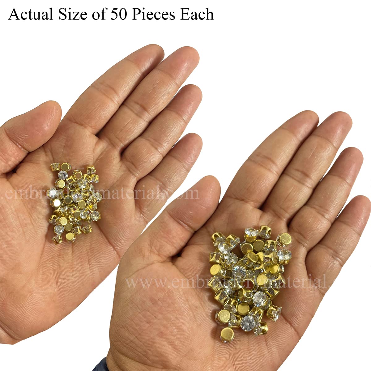 Elevate your jewelry making embroidery crafts fabrics and more with our exquisite Silver Rainbow Crystal Rhinestones in Crown Prong Setting. This pack includes 50 round-shaped rhinestones each measuring 5MM meticulously crafted to enhance your creations.Crafted with precision these rhinestones boast a captivating silver rainbow finish that adds a dazzling sparkle to any project. Set in durable brass crown prong settings these rhinestones not only offer style but also ensure secure placement.Made from high-quality crystal glass these rhinestones exhibit unparalleled clarity and brilliance. Their clear rainbow crystals without foiling create a mesmerizing visual effect perfect for adding depth and dimension to your designs.The crown prong setting design provides a distinctive high-rise appearance ideal for achieving a 2D effect when sewn onto fabric. Additionally the setting allows for a 1MM cord to effortlessly pass through the stone and prong making them perfect for creating jewelry items.