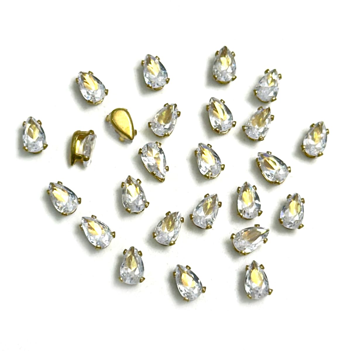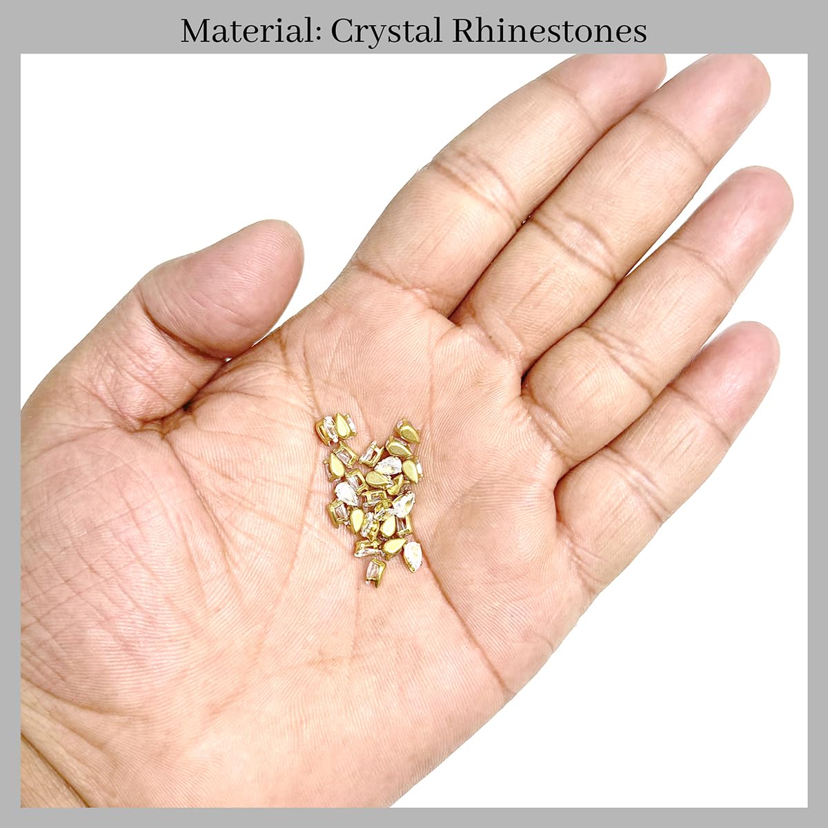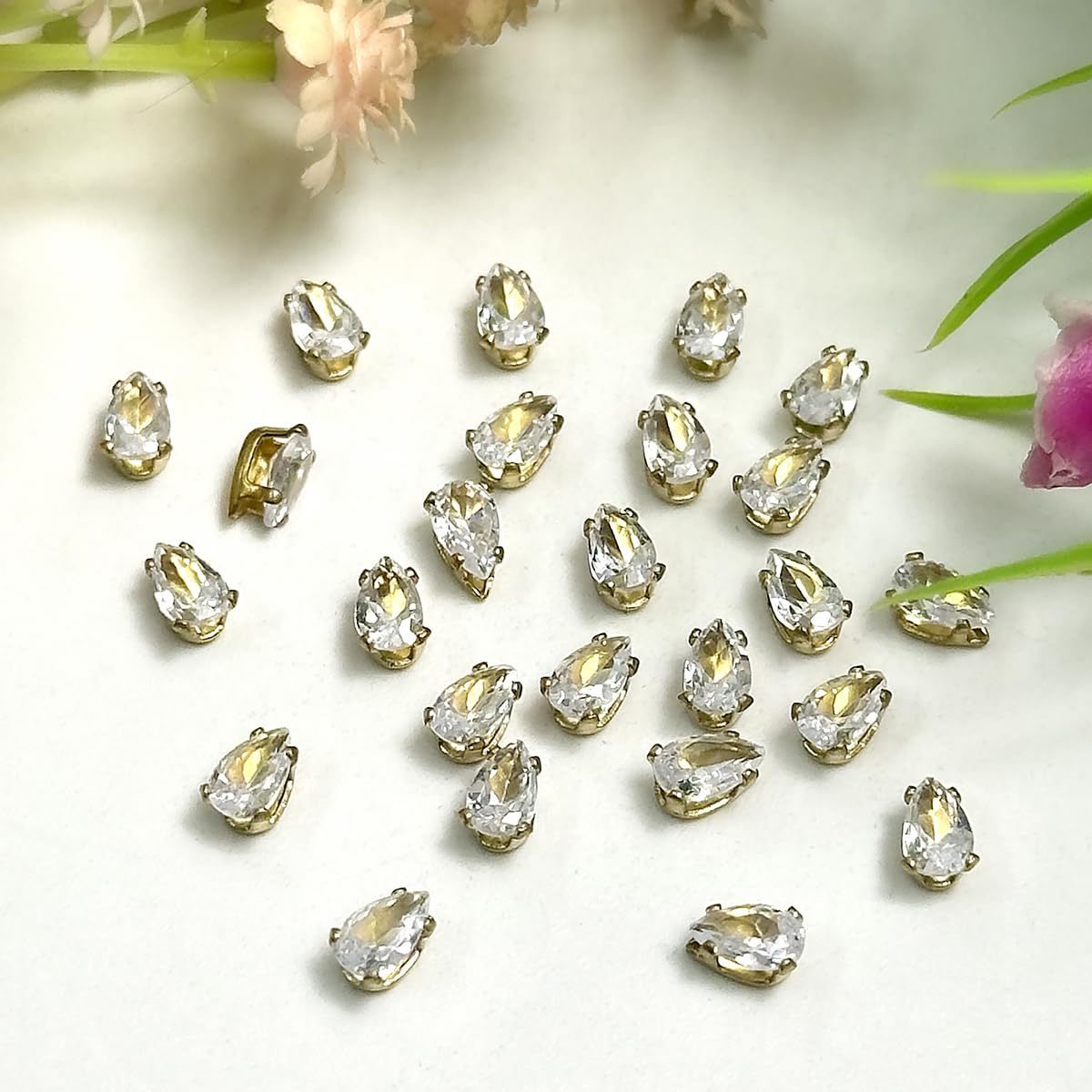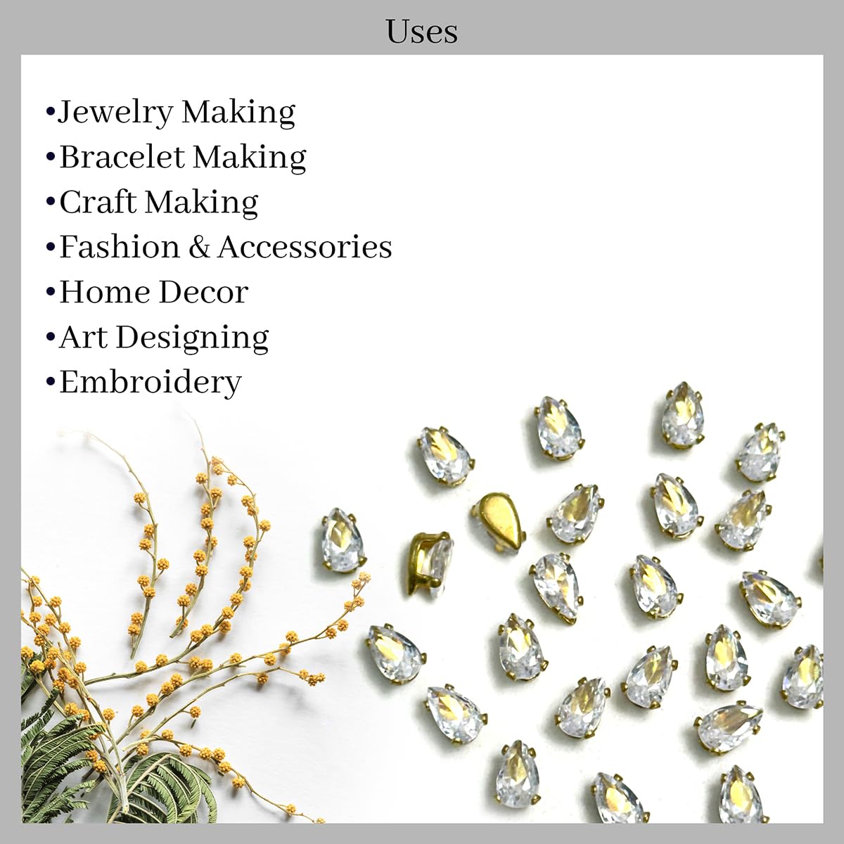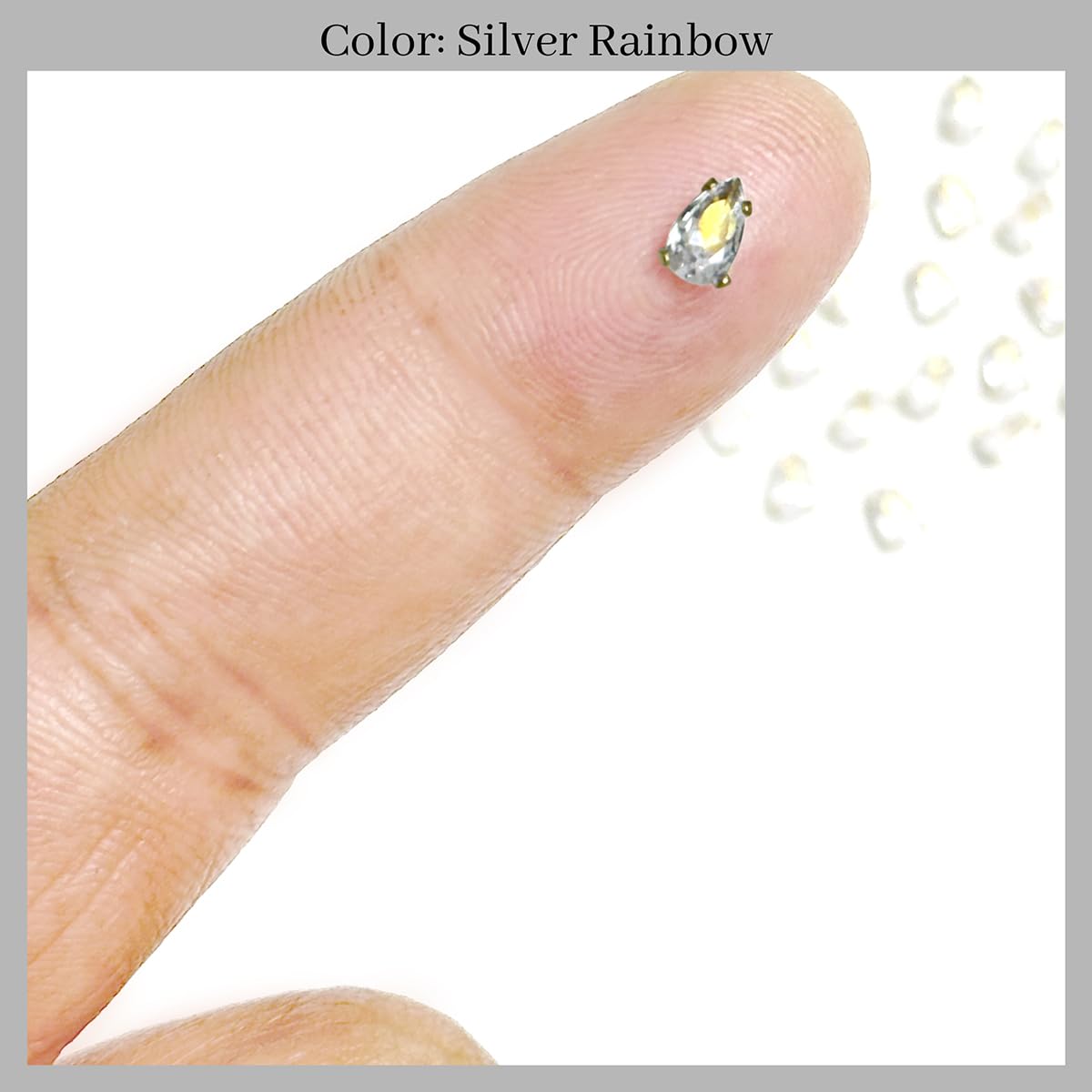 Elevate your crafts jewelry and embroidery projects with our exquisite Silver Rainbow Crystal Rhinestones in Golden Metal Back Crown Prong Setting. Crafted from high-quality crystal glass and set in golden brass these Tear Drop-shaped rhinestones measure 3X5MM each offering a perfect balance of elegance and versatility.Whether you're embellishing fabric creating jewelry pieces or adding flair to your embroidery designs these rhinestones are sure to captivate. With their 2D effect and the ability for a 1MM cord to easily pass through the stone and prong setting crafting stunning jewelry items has never been easier.Each pack contains 50 pieces of dazzling rhinestones allowing you to unleash your creativity and bring your artistic vision to life. Transform ordinary pieces into extraordinary works of art with the shimmering beauty of our Silver Rainbow Crystal Rhinestones.Key Features:Crystal Glass Material: Ensures a brilliant sparkle and durable finish.Golden Brass Base: Provides a luxurious backdrop for the stunning blue crystals.Tear Drop Shape: Offers versatility for various crafting applications.Size 3X5MM: Perfect for adding eye-catching detail to your projects.Easy to Use: Prong setting allows for effortless incorporation into jewelry and fabric designs.Multipurpose: Ideal for craft projects jewelry making embroidery fabric embellishment and more.
