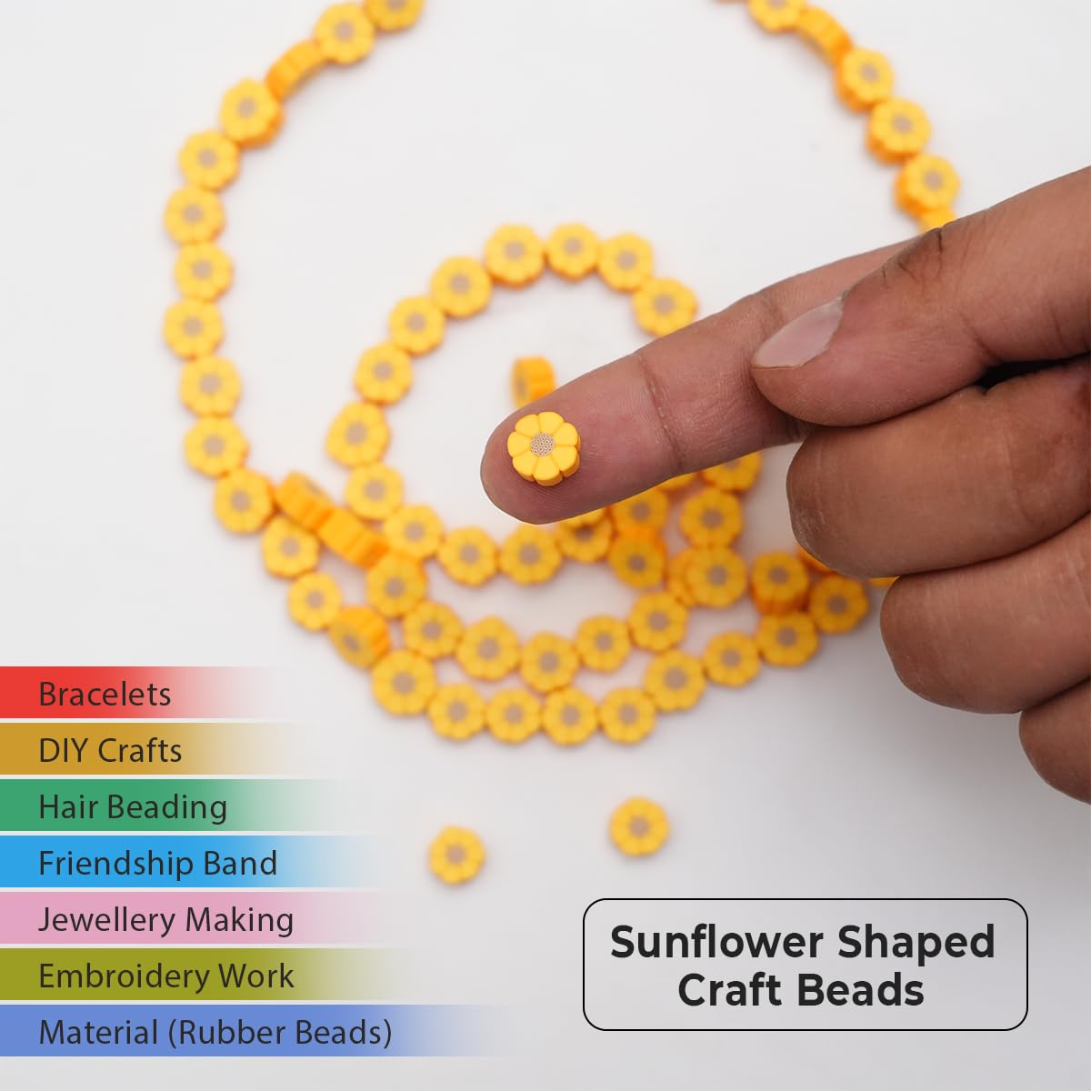 SKU ID - EMBPC09749A Charming Sunflower Shape: Each bead features a beautiful sunflower design capturing the essence of summer in its bright and cheerful yellow hue. These beads are perfect for adding a natural floral touch to your craft creations.