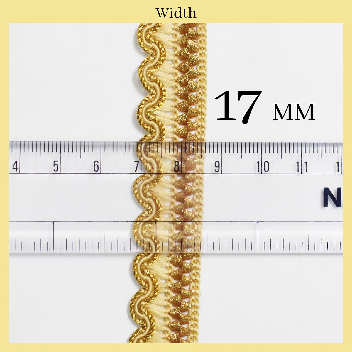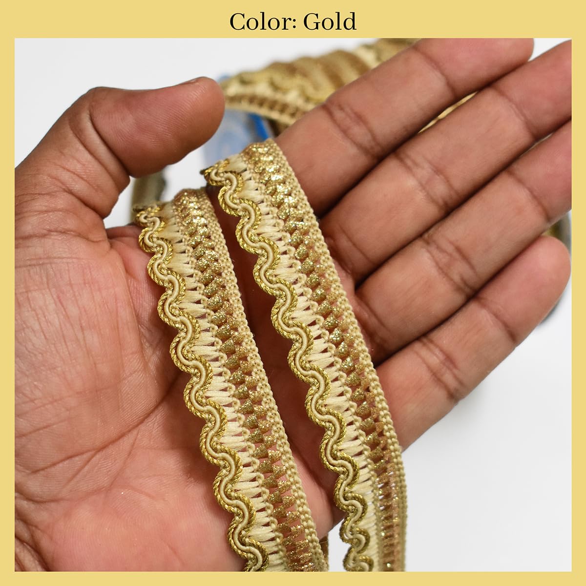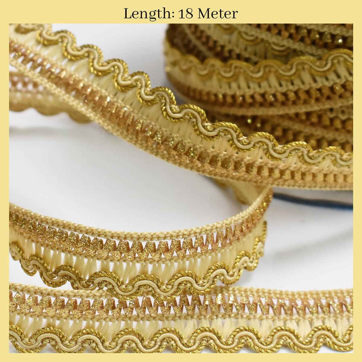 Introducing our Gold & Beige Zari Lace a stunning embellishment perfect for sewing and embroidery projects. This versatile lace features a width of 17mm and a generous total length of 18 meters providing ample material for various creative endeavors. Crafted in a timeless Gold & Beige color this lace adds an elegant and luxurious touch to any garment or accessory it adorns. Its premium quality zari material ensures durability and a seamless finish guaranteeing a high-quality addition to your projects. Ideal for a wide range of applications this lace is suitable for enhancing saree borders blouse borders dupatta borders blouse neck designs dresses suits lehenga designs kurtis and heavy work detailing. Whether you're working on traditional ethnic wear or contemporary designs the Gold & Beige Zari Lace offers endless creative possibilities to elevate your fashion projects..