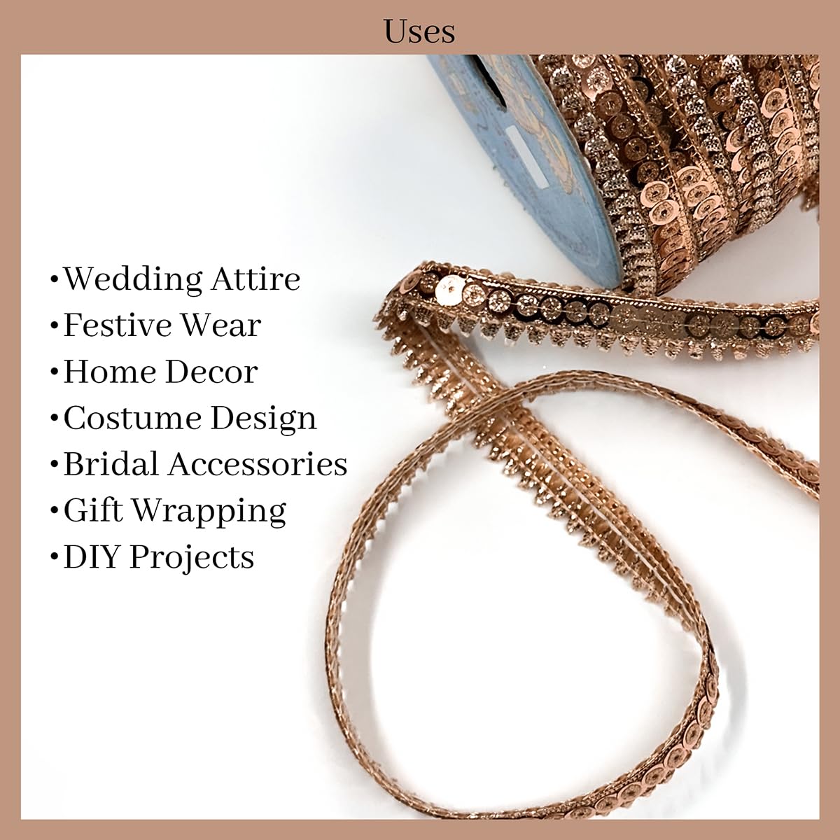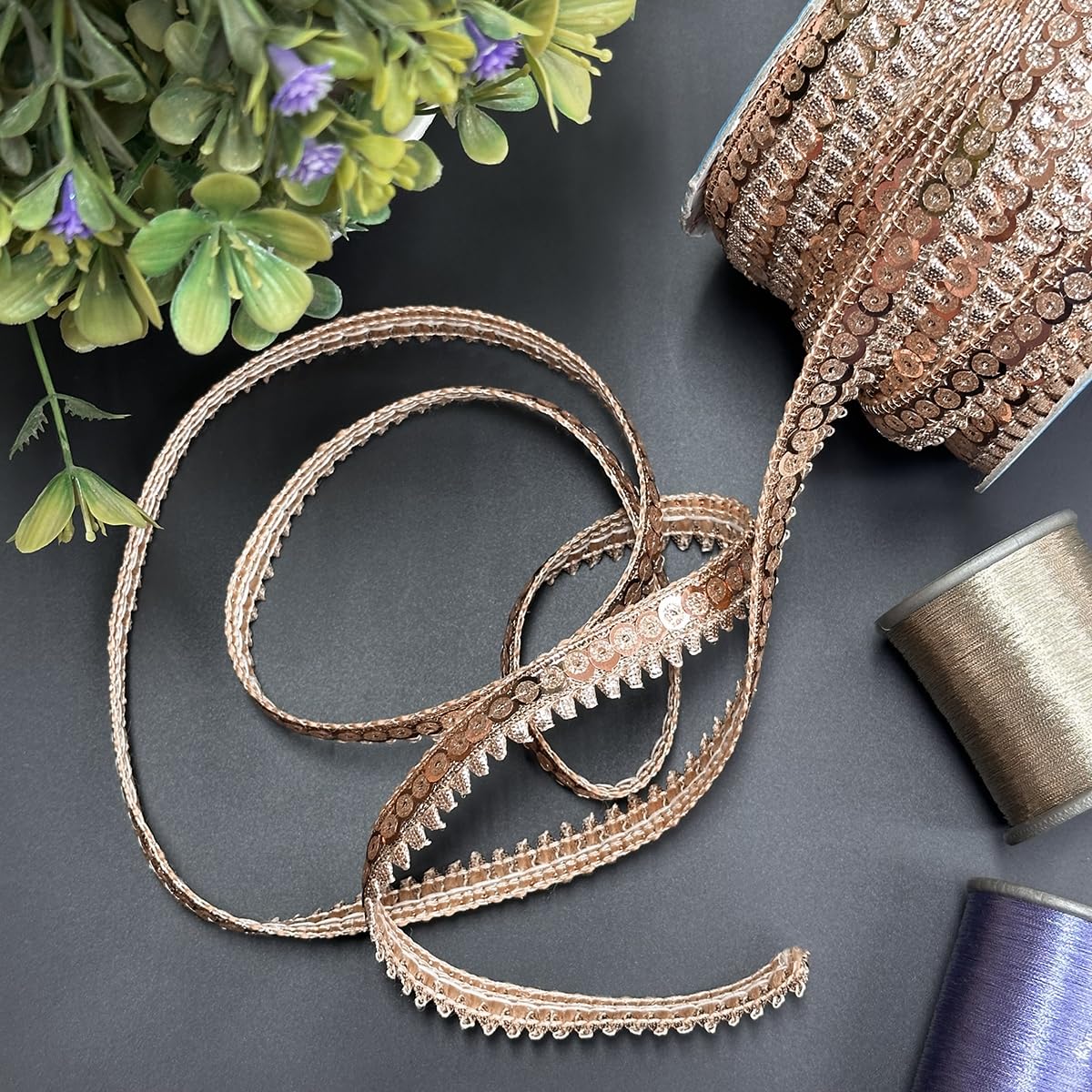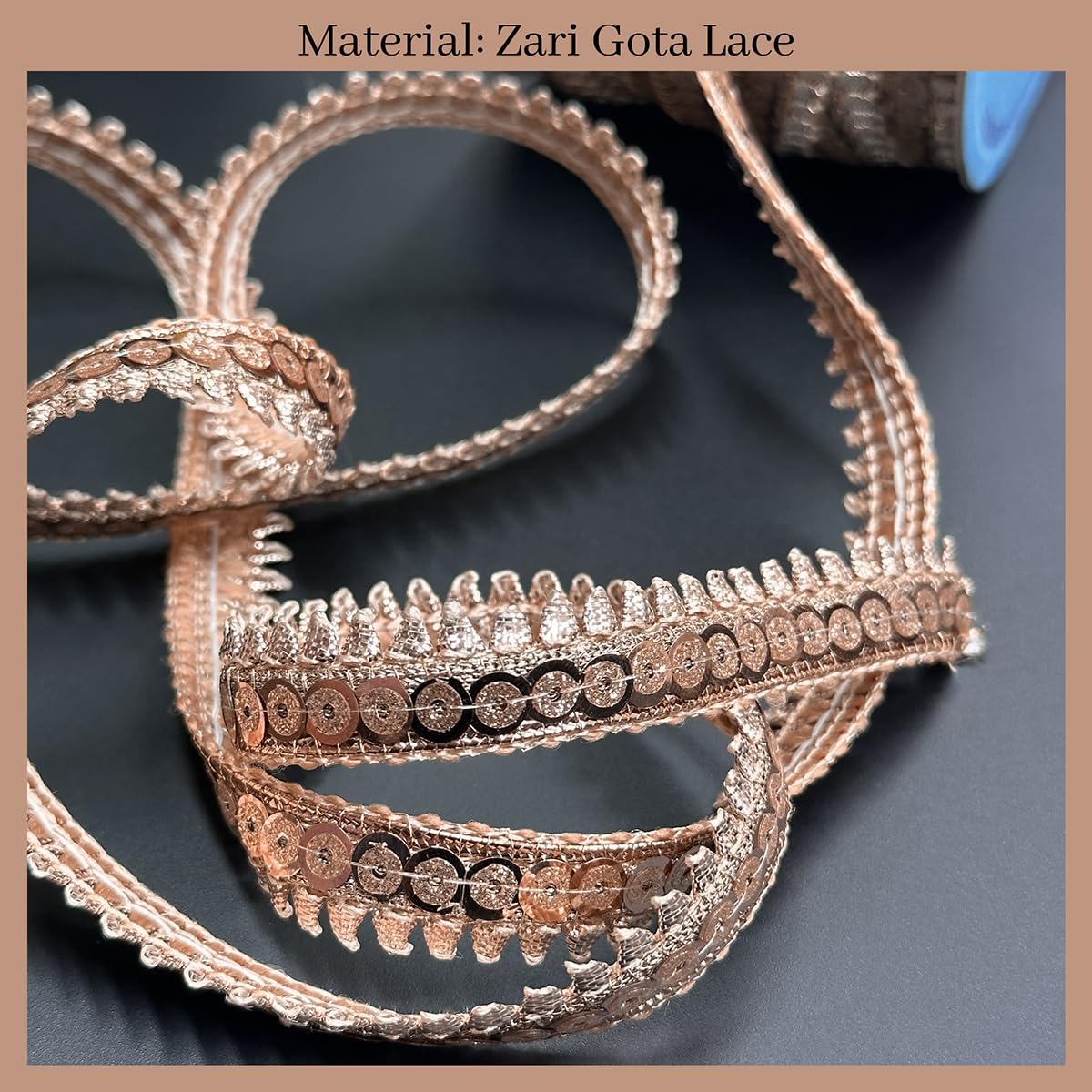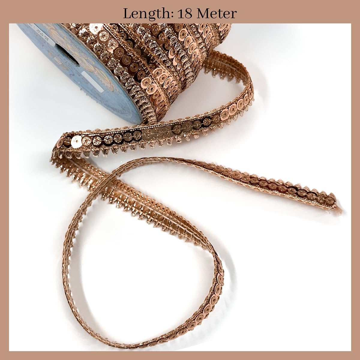 EmbroideryMaterial Zari with Shiny Sequence Sitara Gota Patti Lace for Saree Border Blouse Dupatta Border Lehenga Kurti etc (18 Meters Rose Gold 15mm Wide)