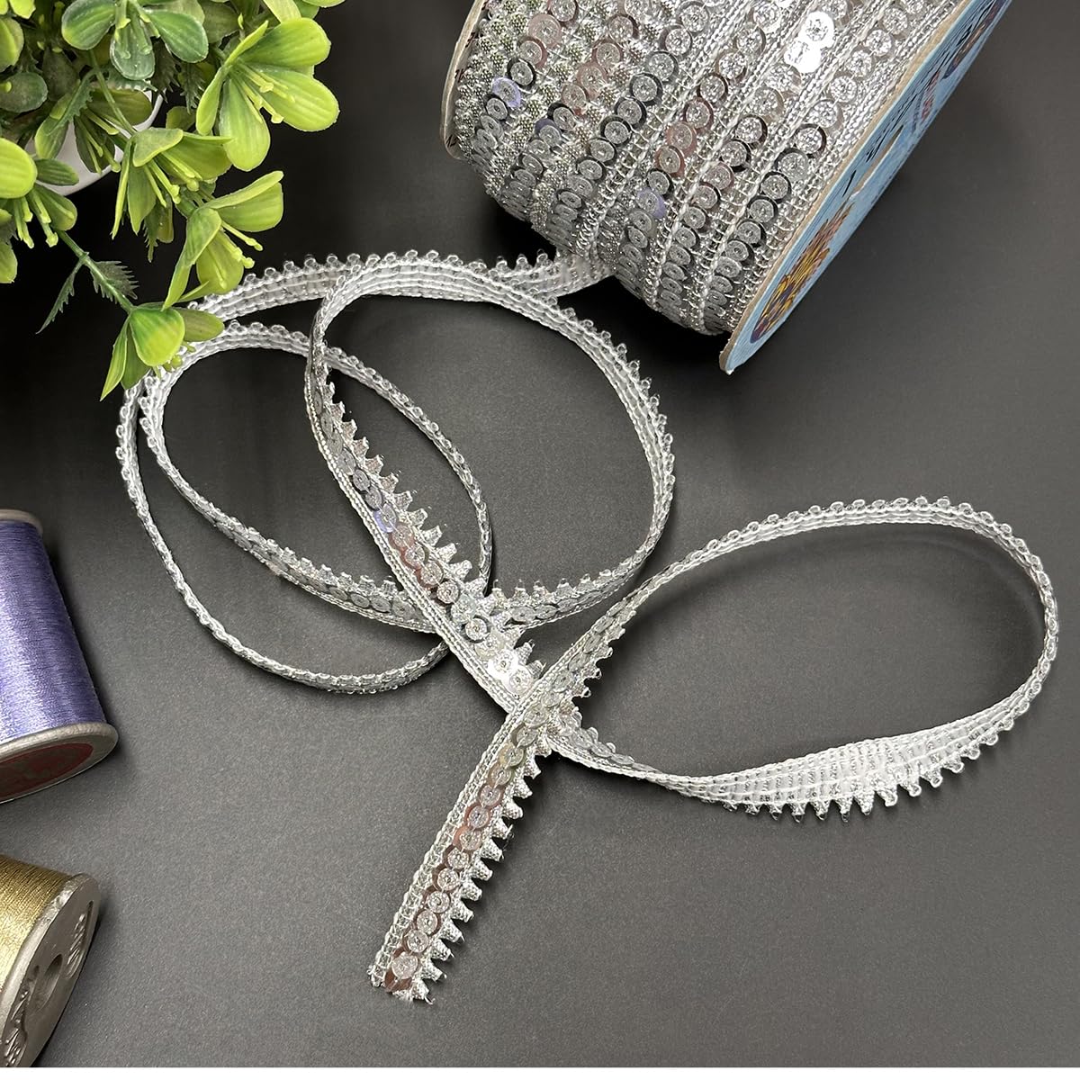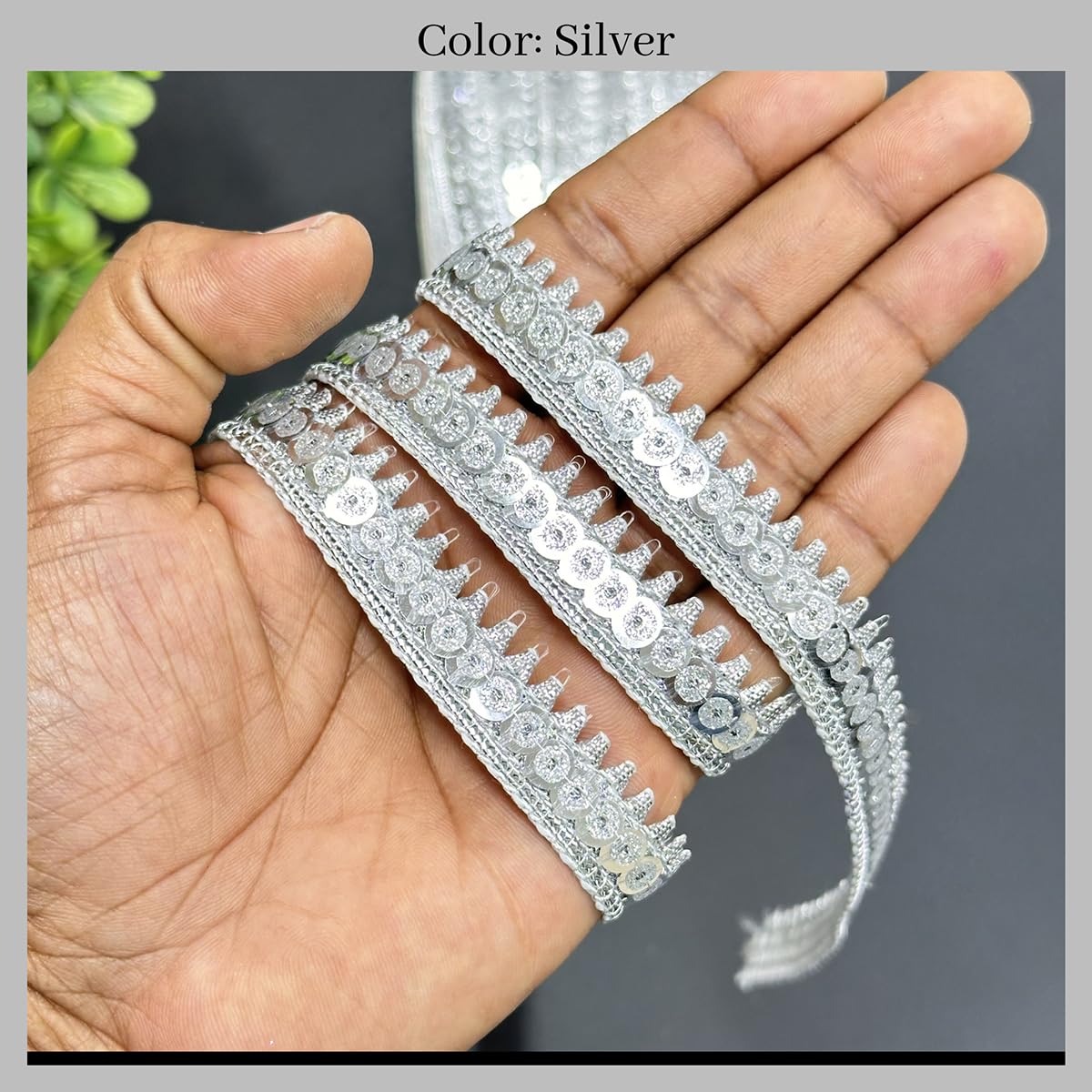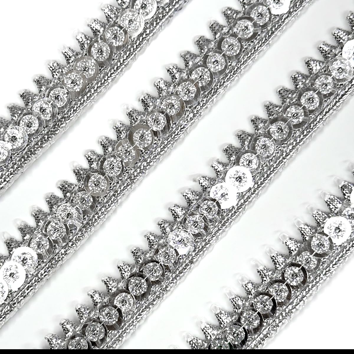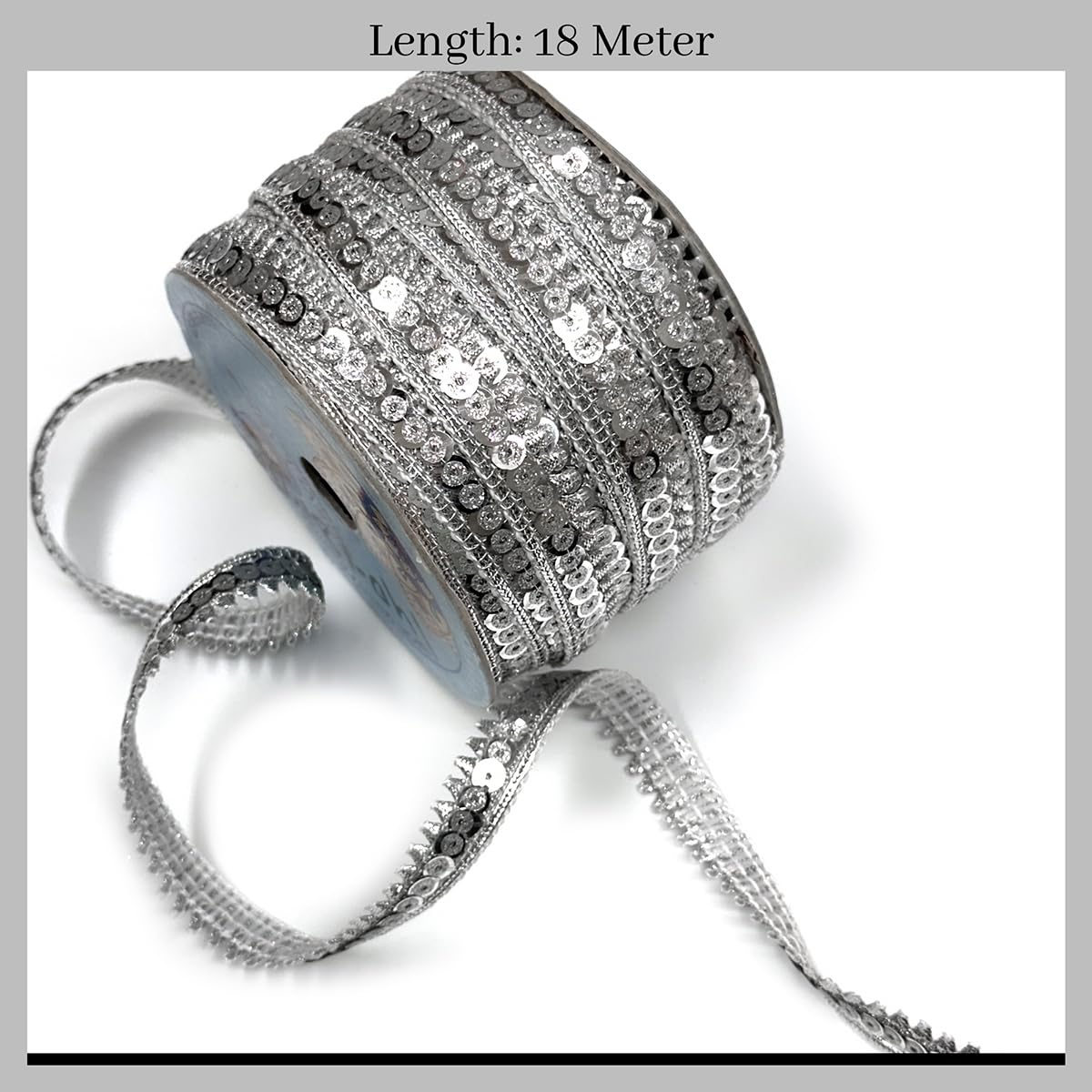 EmbroideryMaterial Zari with Shiny Sequence Sitara Gota Patti Lace for Saree Border Blouse Dupatta Border Lehenga Kurti etc (18 Meters Silver 15mm Wide)