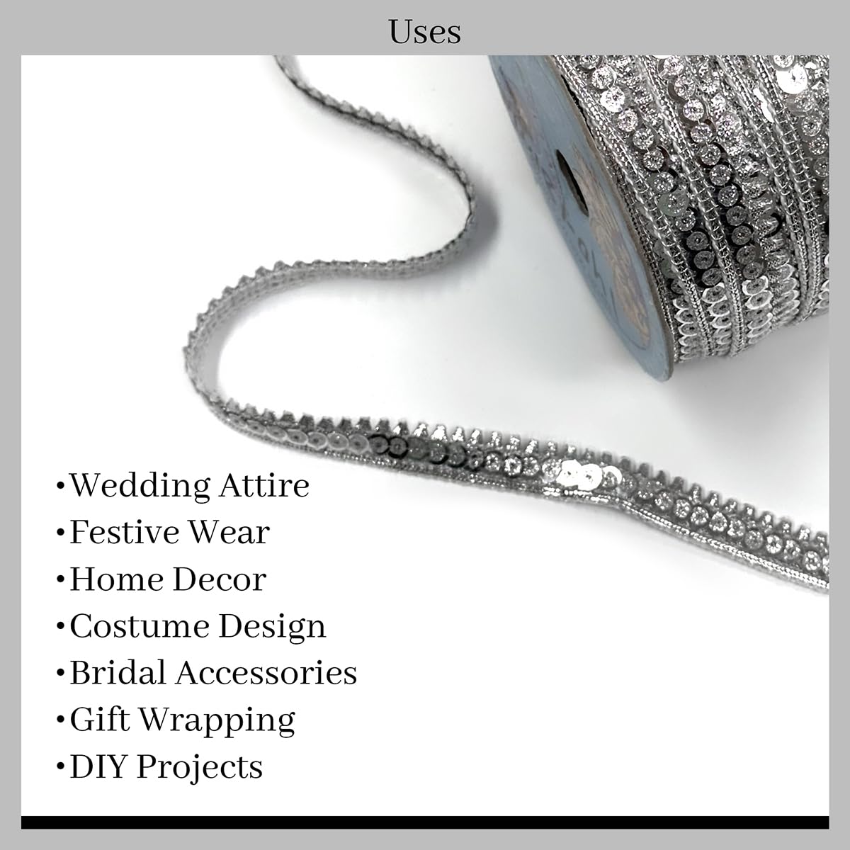 Multiple Uses: Ideal for laces and borders material creating gota patti lace designs embellishing saree borders crafting lace borders for garments and more.
