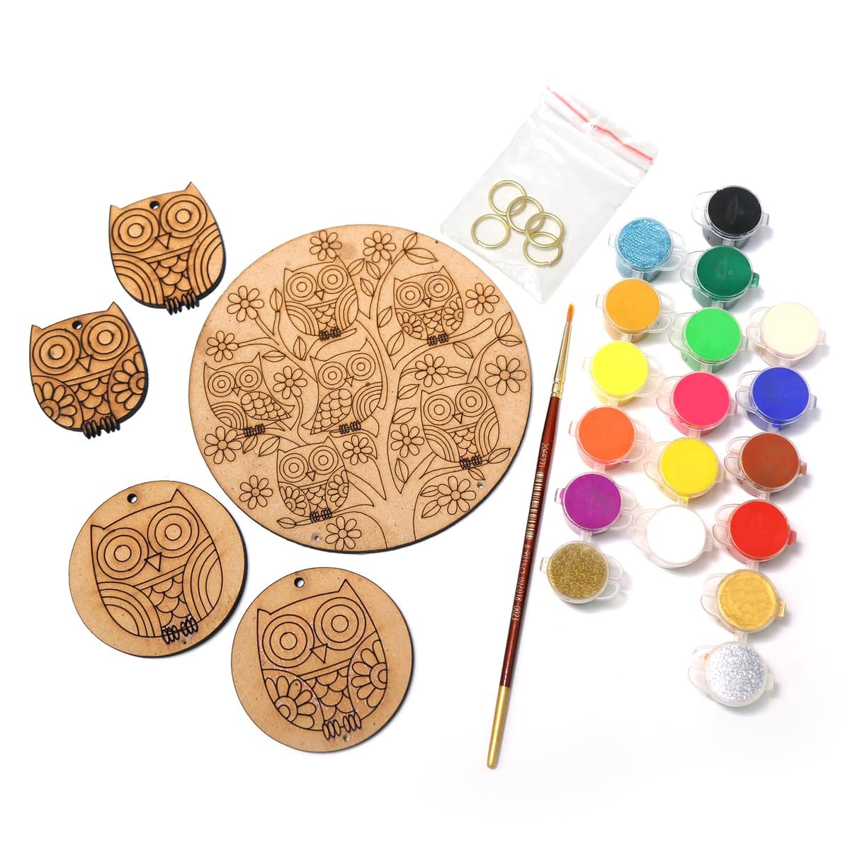 picknMAKE Art & Craft Kit Painting Kit for Kids Tool Kit for Kids Craft Kit DIY Kit for Adult & Kids DIY Home Decor Wooden Owl Painting Kit (All Materials Included)