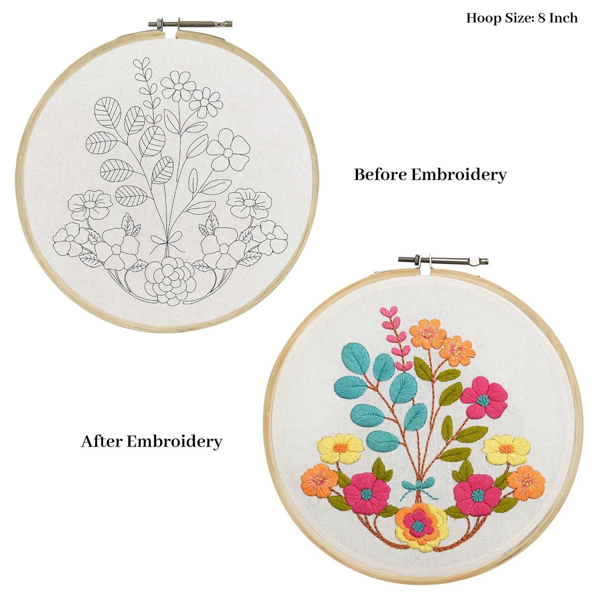 HomeArt & CraftDIYpicknMAKE DIY Cross Stitch Hand Embroidery Kit for Beginners Adult Kids with Pattern & Cloth Multicolor Floral Bouquet Design Written Instructions Embroidery Hoop & All Other Materials Included