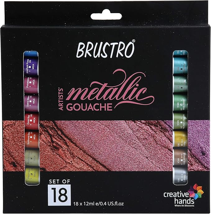 Comes in a set of 18 unique, shimmering metallic shades to add highlights and reflective qualities to your artworks in 12ml tubes